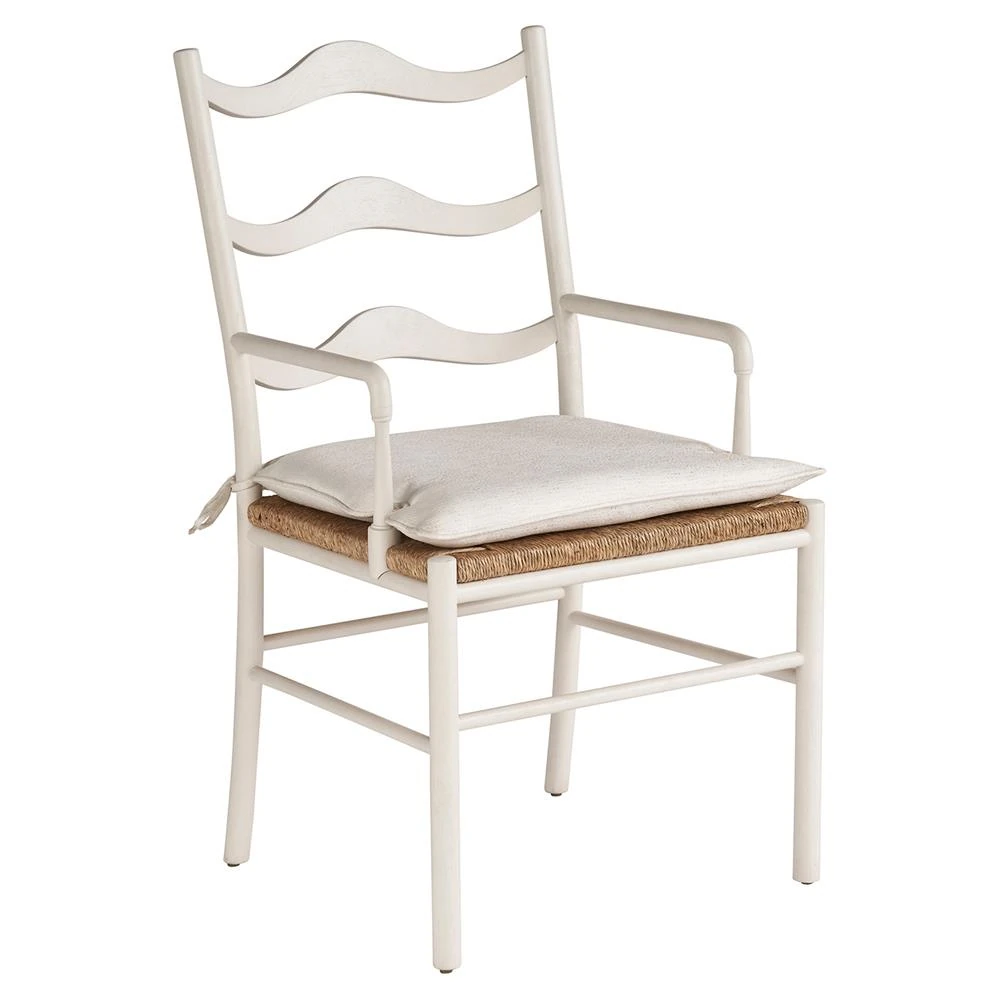 Camilla Coastal Off White Upholstered Woven Rush Dining Arm Chair - Set of 2