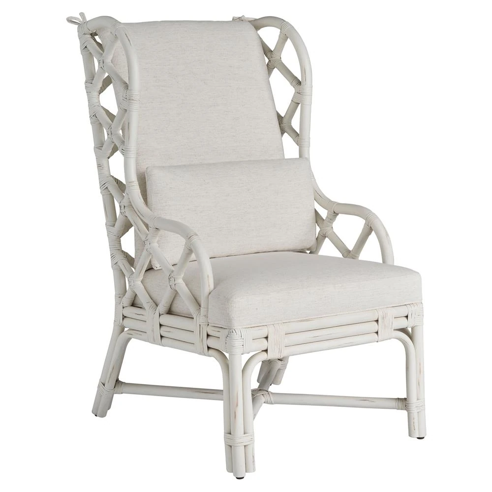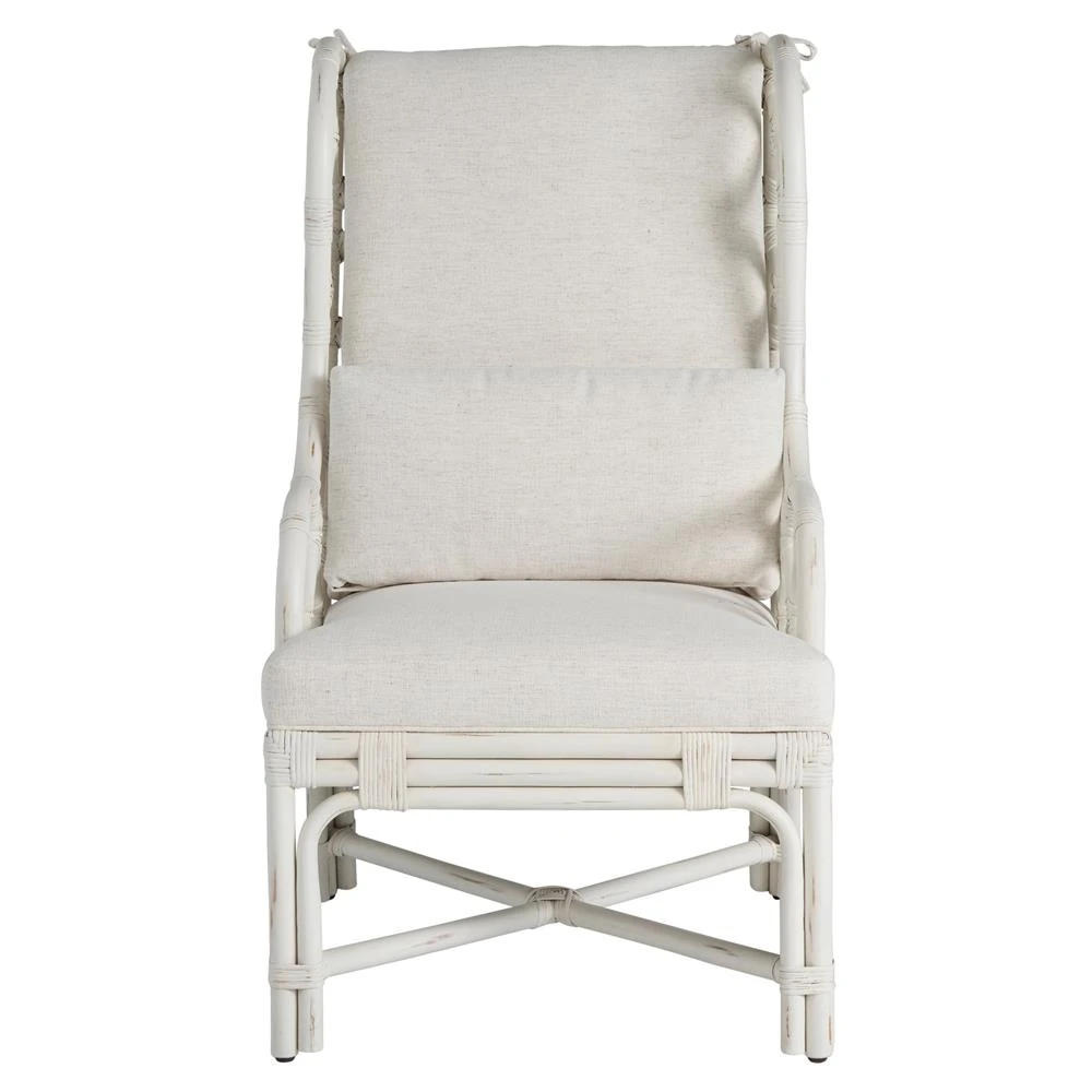 Carter Coastal Beach White Upholstered Rattan Wing Back Dining Arm Chair