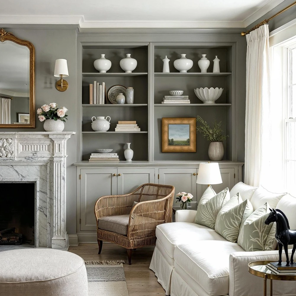 • Albina French Country Grey Acacia Wood Storage Bookcase|Kathy Kuo Home