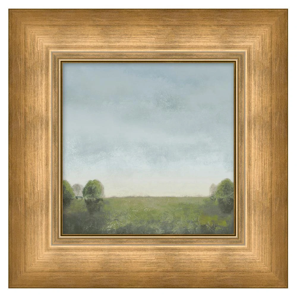 Breezy French Country Blue Sky Green Landscape Brown Frame Painting - 16x16