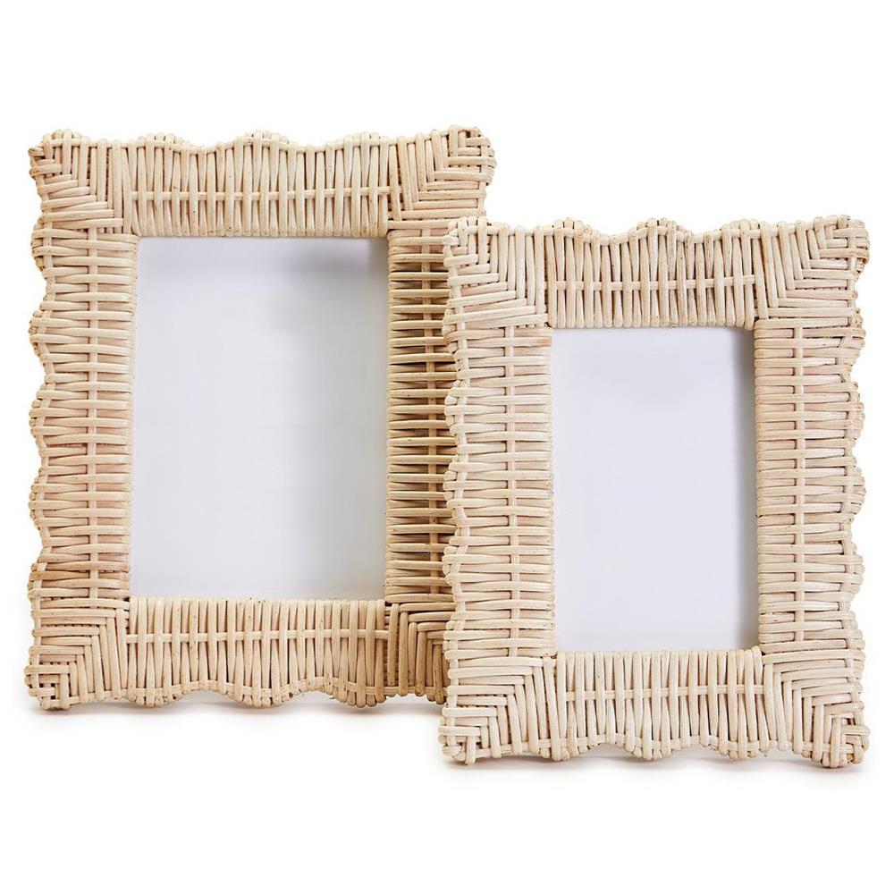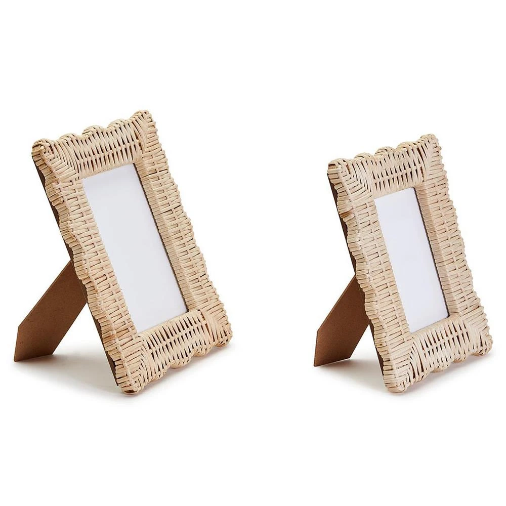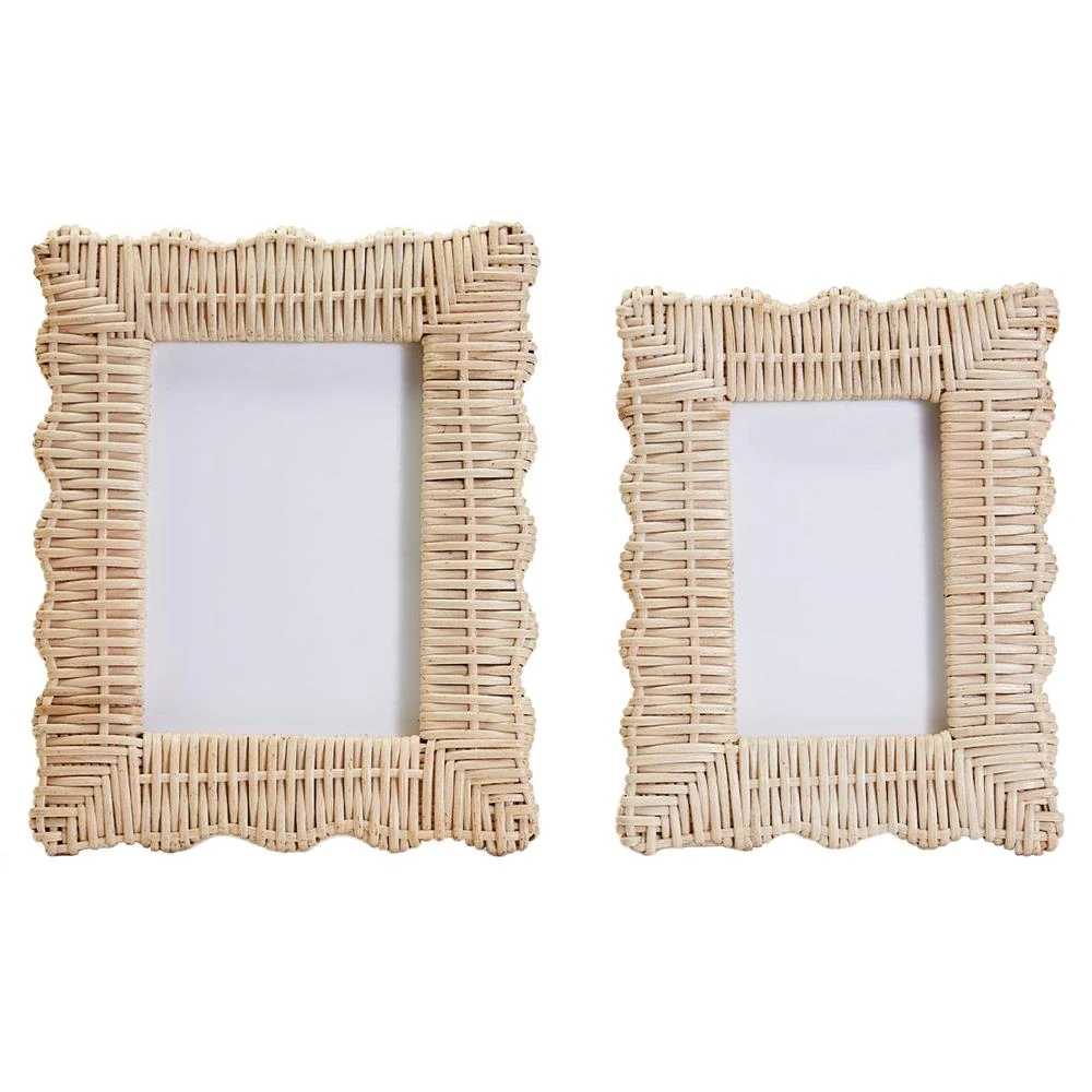 Amina Coastal Beach Natural Woven Rattan Scalloped Photo Frame - Set of 2