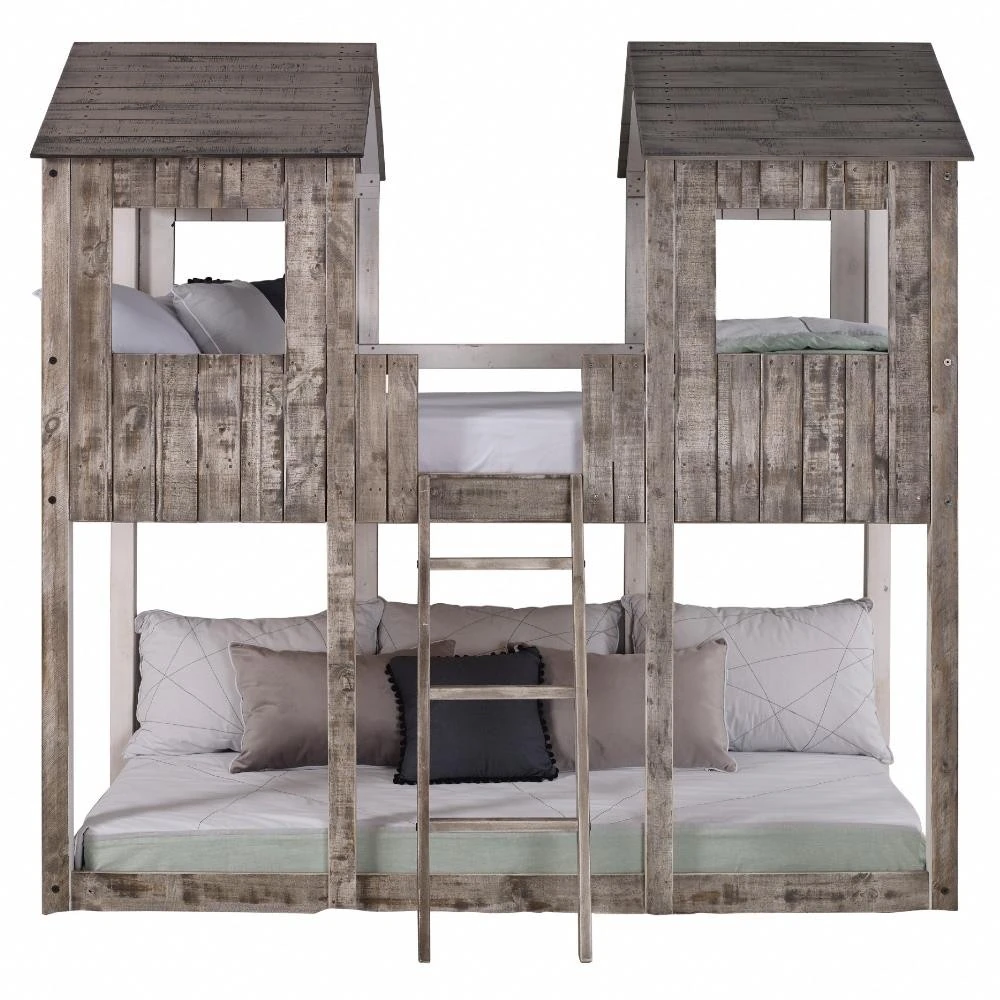 Open Box Avery Rustic Lodge Grey Twin Over Twin Treehouse Bunk Bed