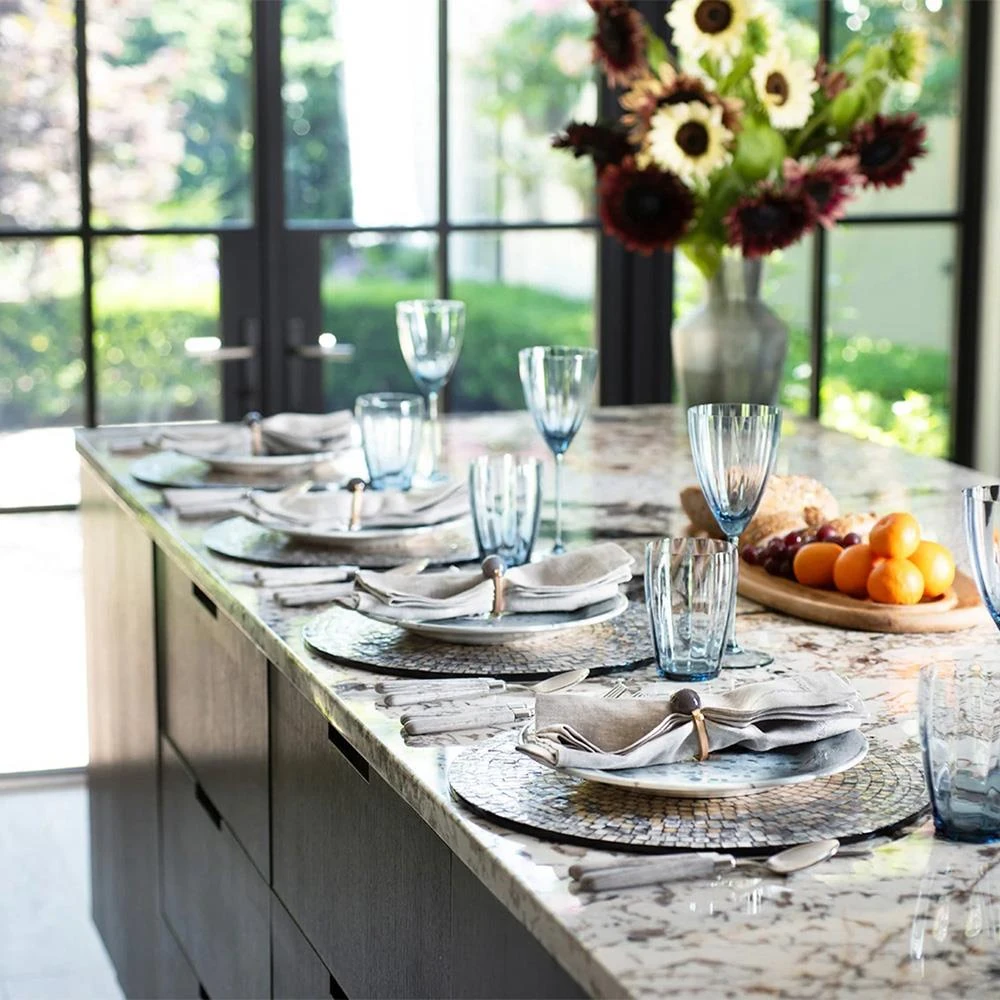 • Tahiti Coastal Blue Capiz Shell Round Placemat - Set of 4|Kathy Kuo Home