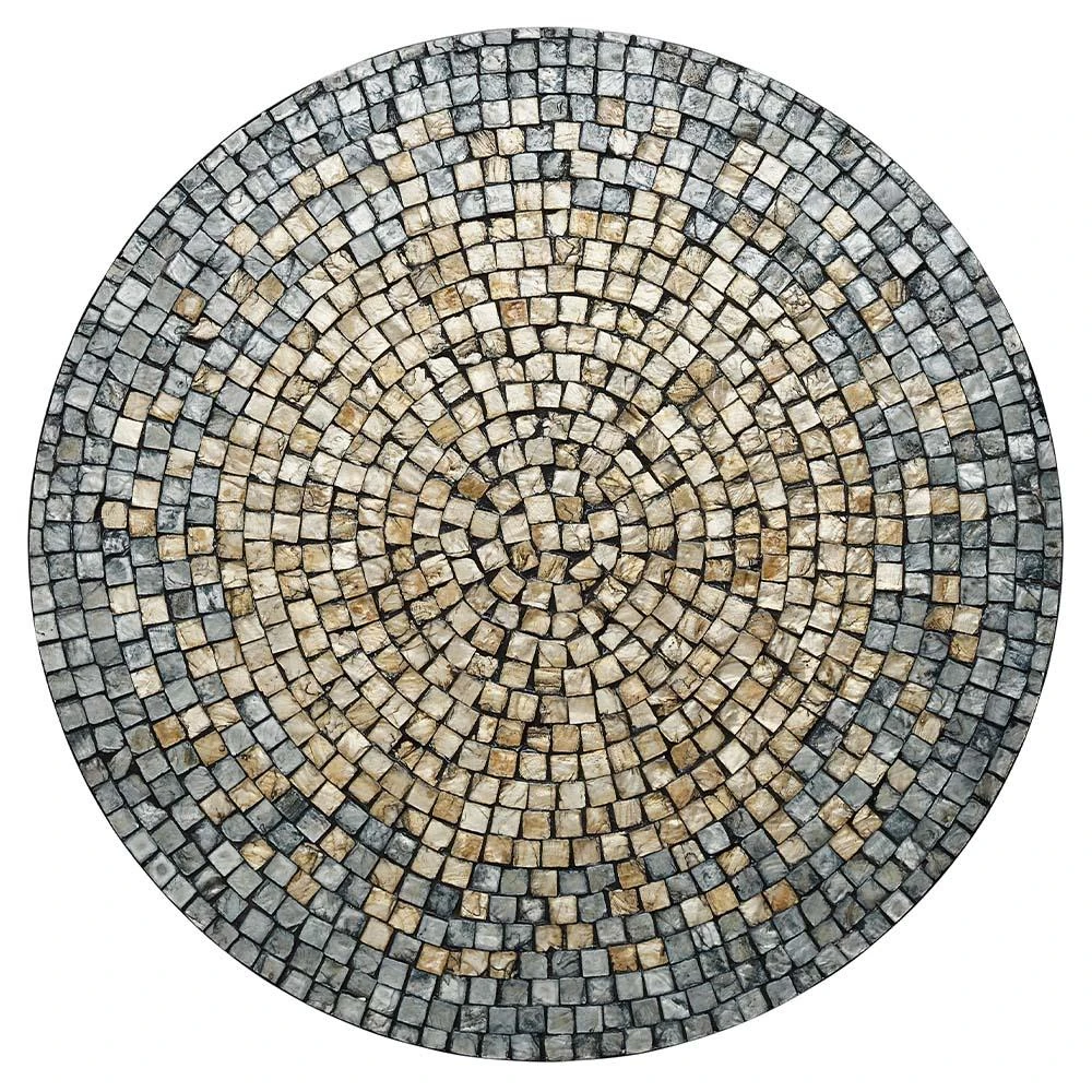 • Each shell is hand-cut and arranged in a radiating ombre mosaic pattern