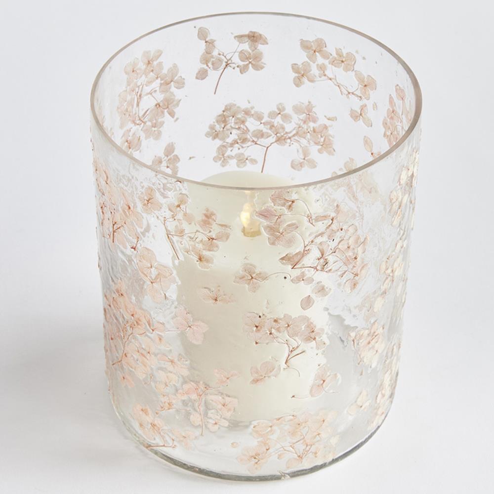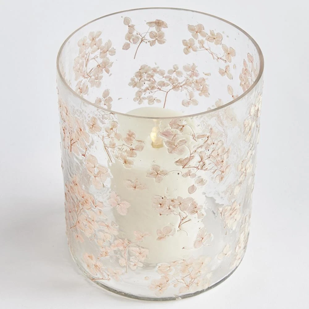Vivian French Country Pink Glass Floral Hurricane Candle Holder