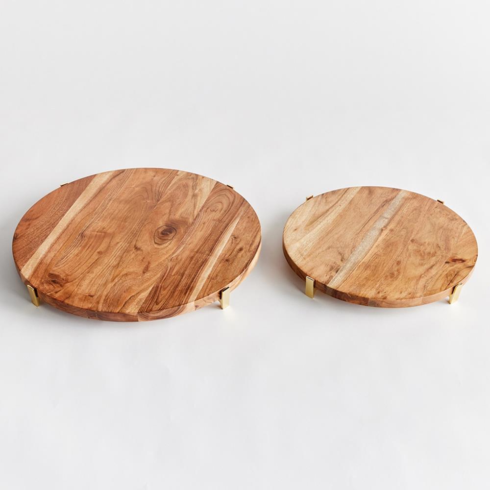 Kieran Rustic Lodge Natural Acacia Wood Round Serving Board - Set of 2
