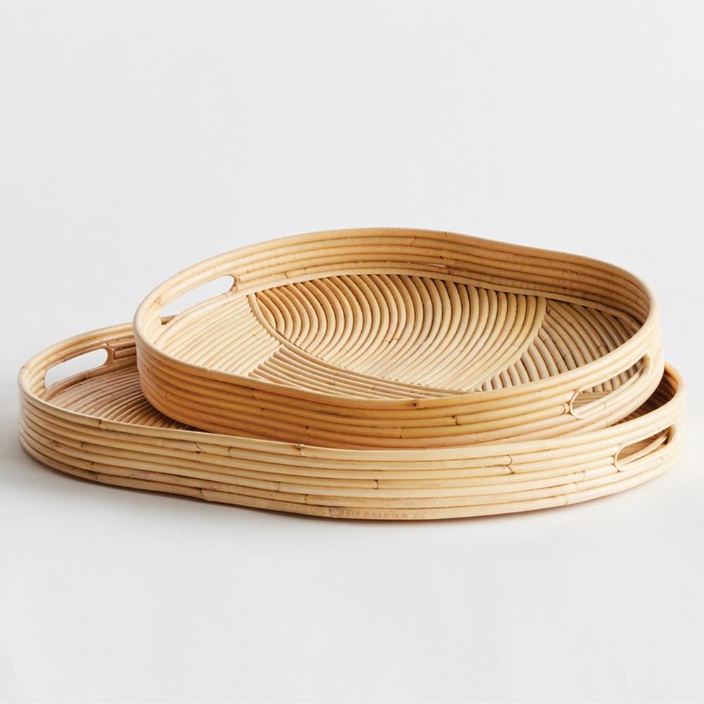 Skylar Coastal Beach Natural Rattan Oval Serving Tray - Set of 2