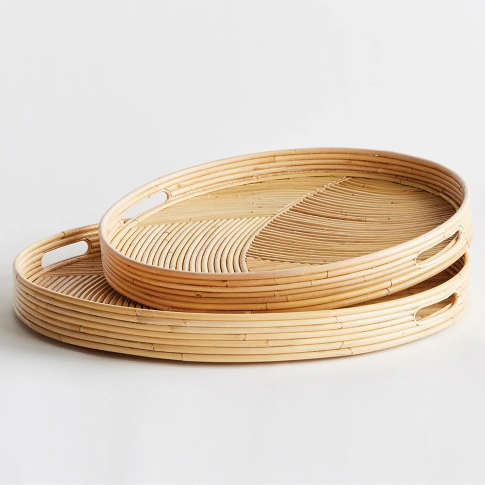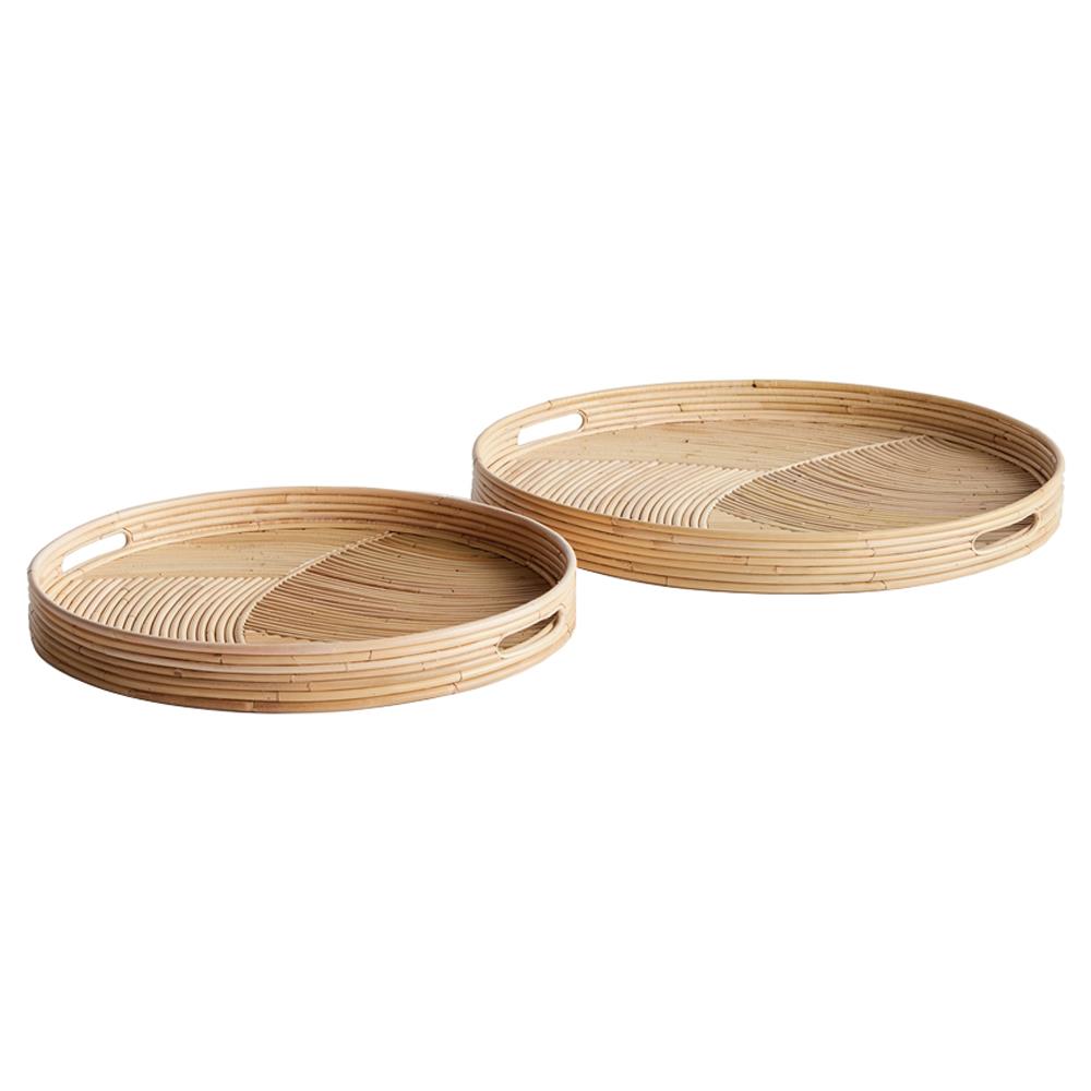 Skylar Coastal Beach Natural Rattan Round Serving Tray - Set of 2