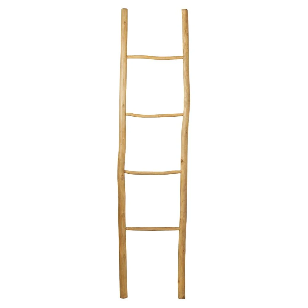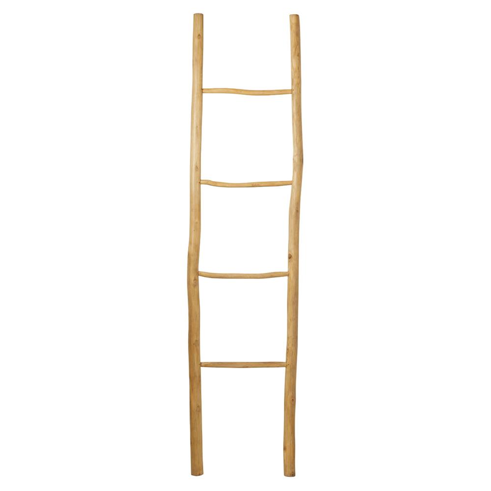 Kelly Coastal Beach Natural Teak Wood Branch Ladder Shelf
