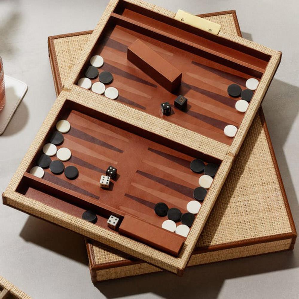 Pigeon and Poodle Hanford Natural Woven Raffia Backgammon Game Set - Small