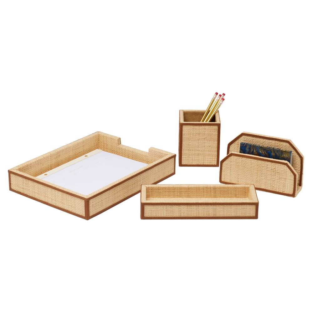 Pigeon and Poodle Hanford Natural Raffia Saddle Leather 4 Piece Letter Tray Set