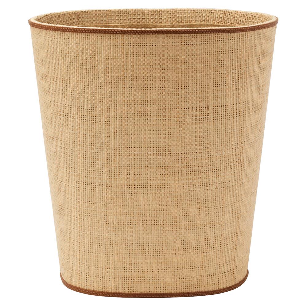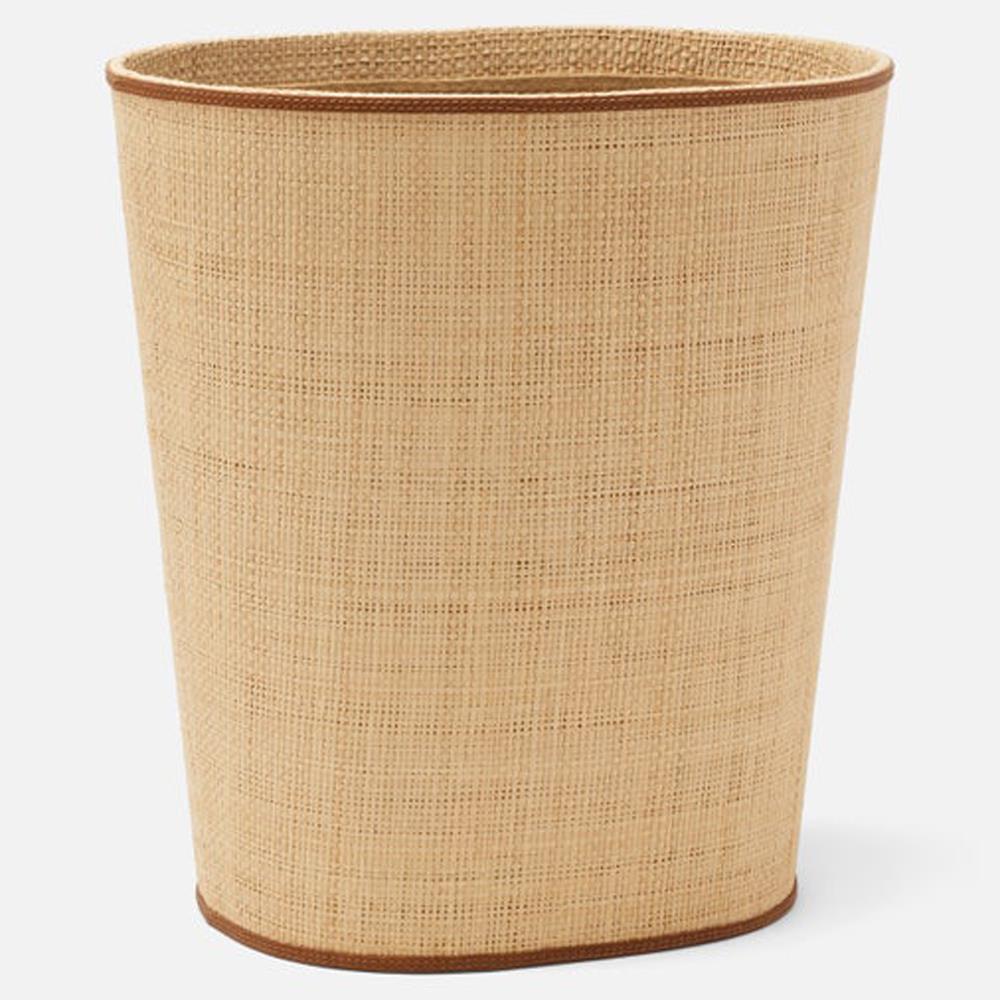 Pigeon and Poodle Hanford Natural Woven Raffia Saddle Leather Oval Waste Basket