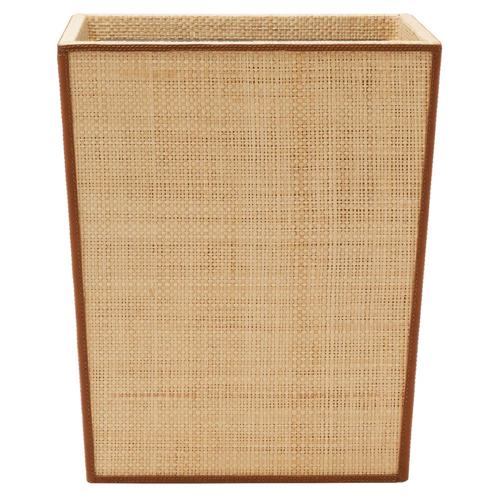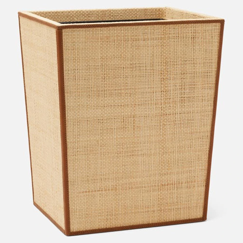 Pigeon and Poodle Hanford Natural Raffia Saddle Leather Rectangular Waste Basket
