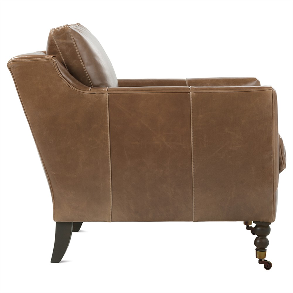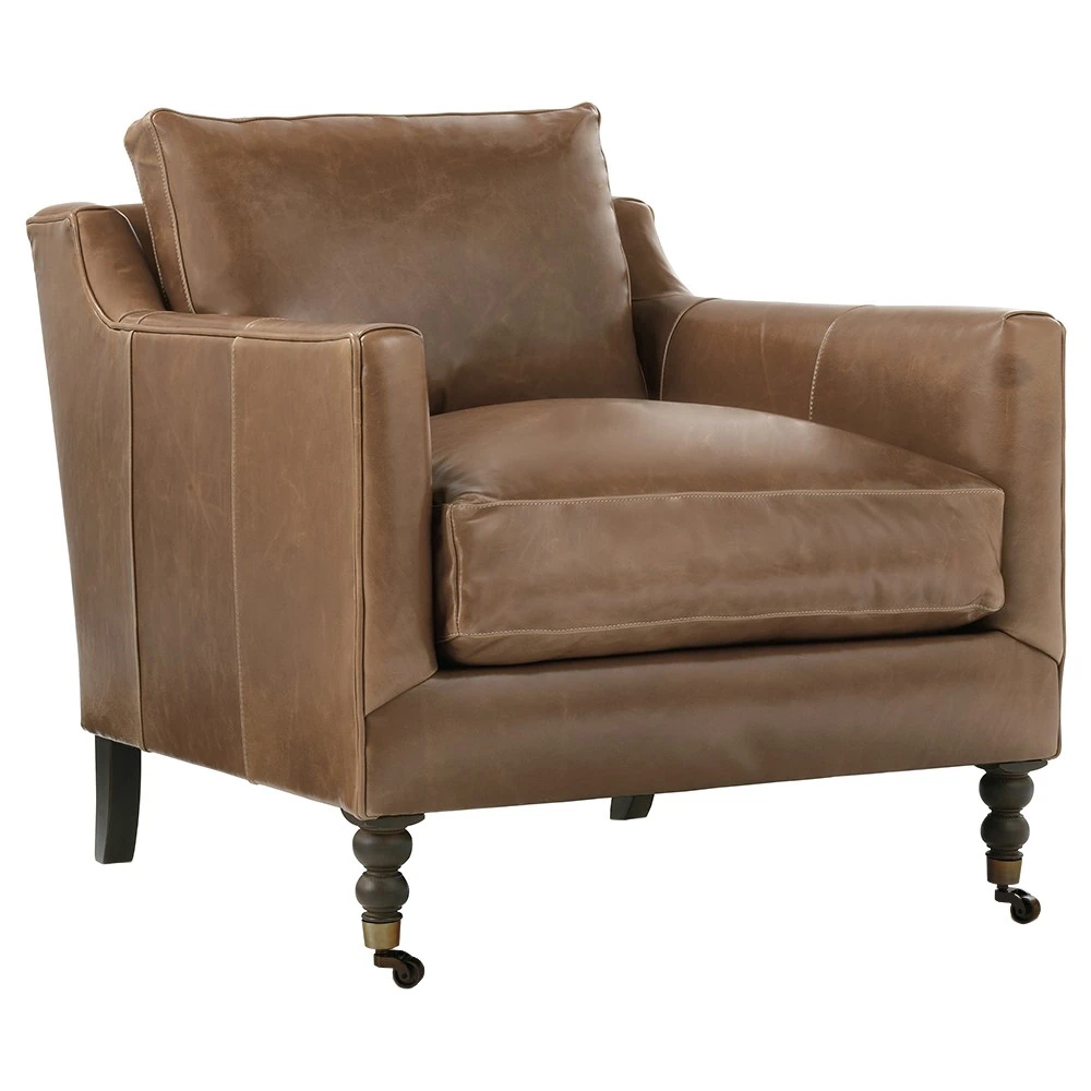 Madeline French Country Cocoa Brown Upholstered Leather Casters Arm Chair