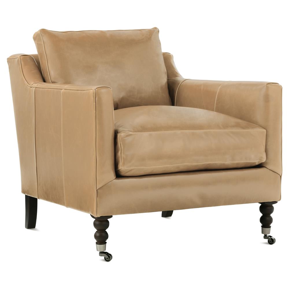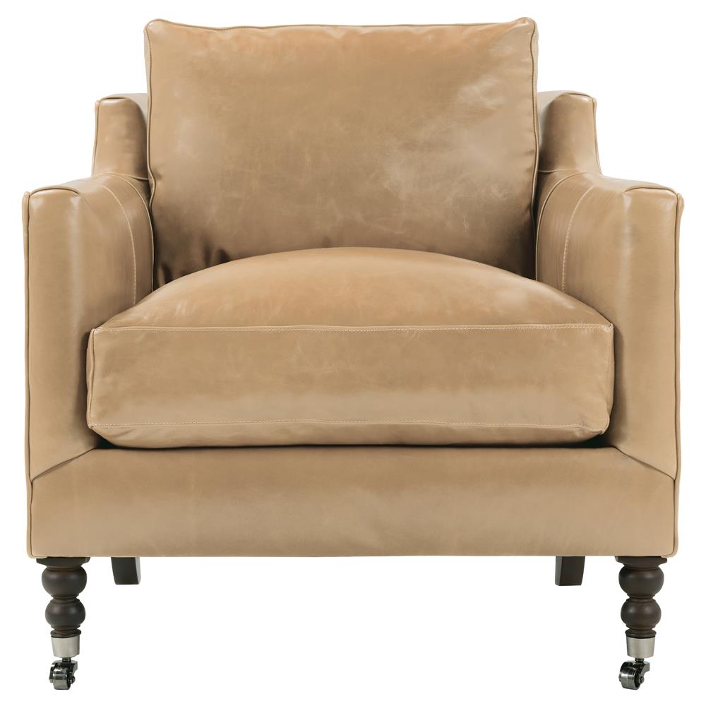 Madeline French Country Butterscoth Brown Upholstered Leather Casters Arm Chair