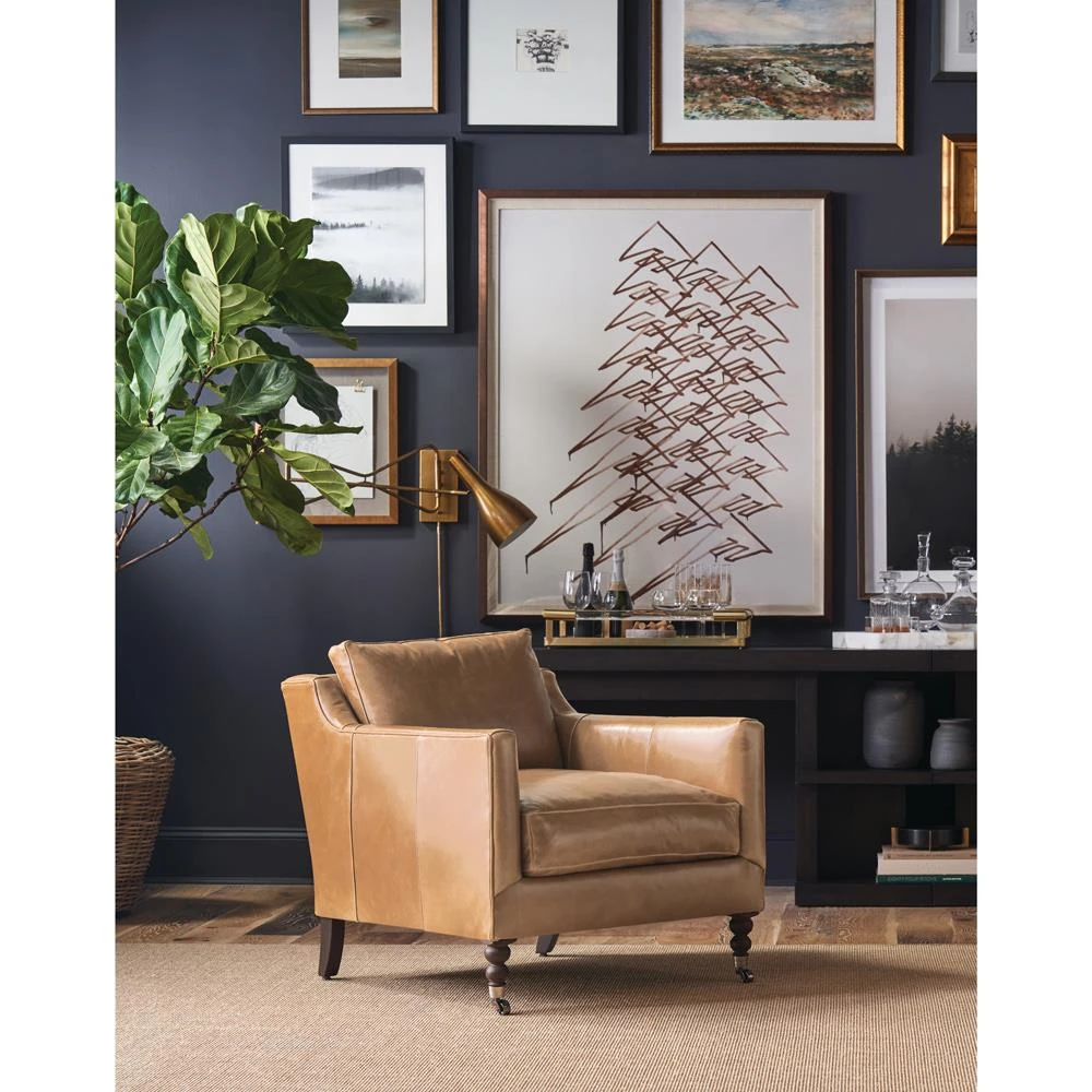• Weybridge Modern Classic Light Brown Leather Recliner Arm Chair|Kathy Kuo Home