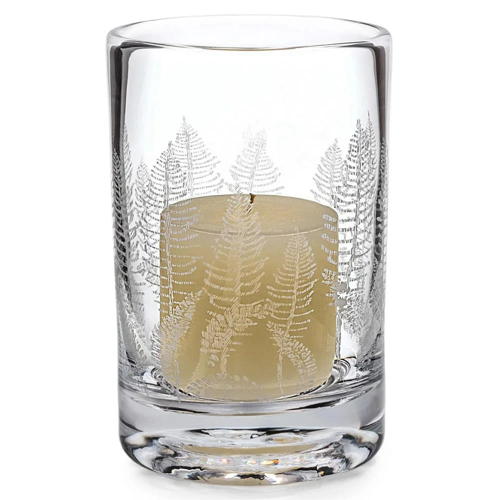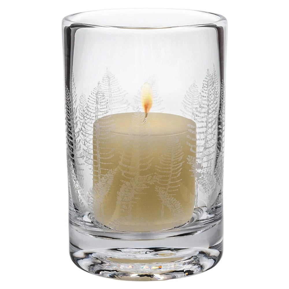 Simon Pearce Ascutney Engraved Fern Modern Classic Glass Hurricane Candleholder