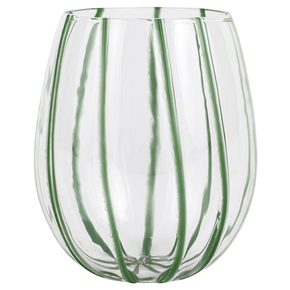 Nuovo Stripe Modern Classic Green Stemless Wine Glass