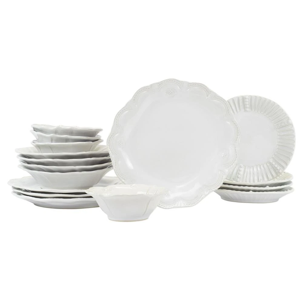 • Juliska Berry & Thread Classic French Whitewash Ceramic 16 Piece Place Setting|Kathy Kuo Home