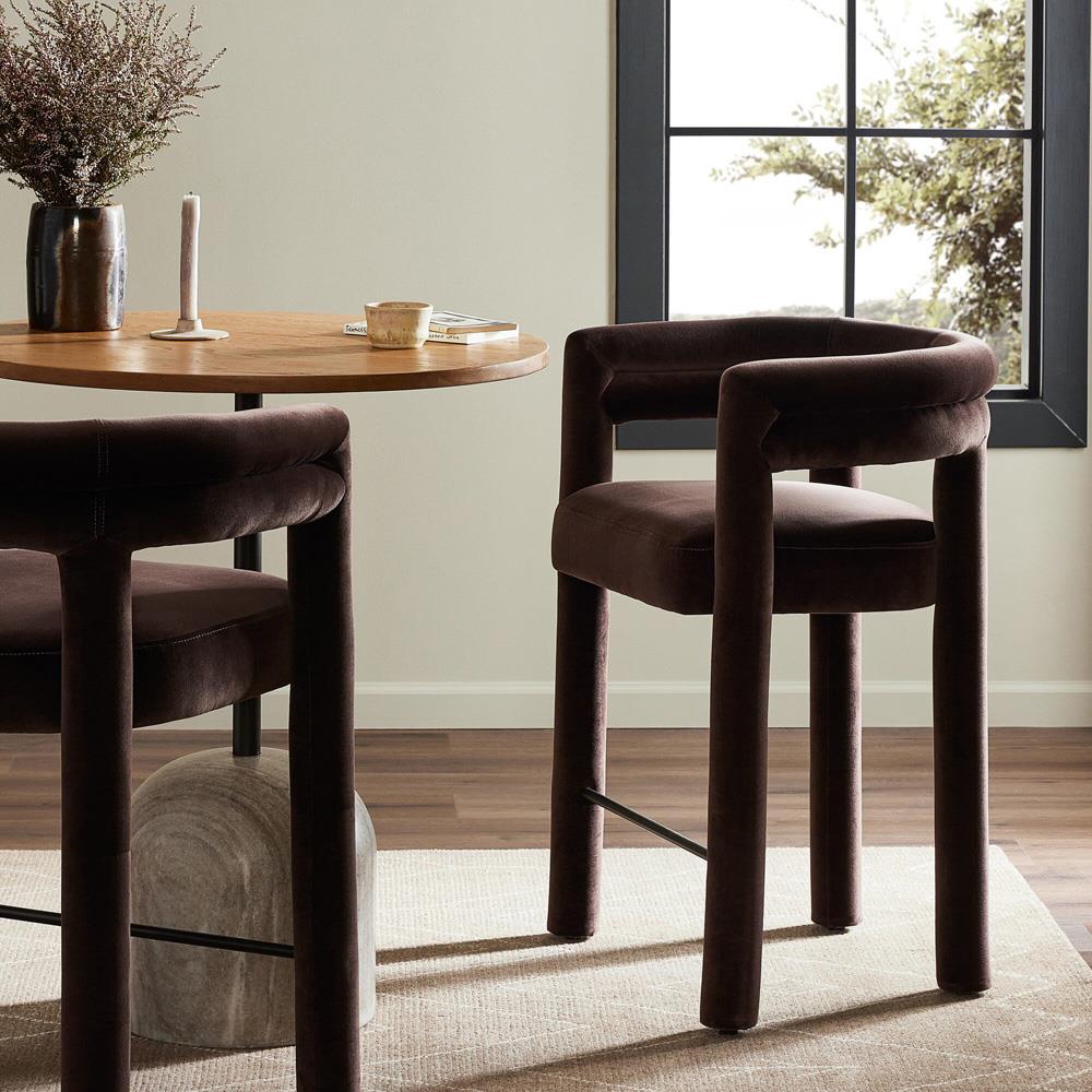 Claire Modern Classic Dark Brown Velvet Counter Stool