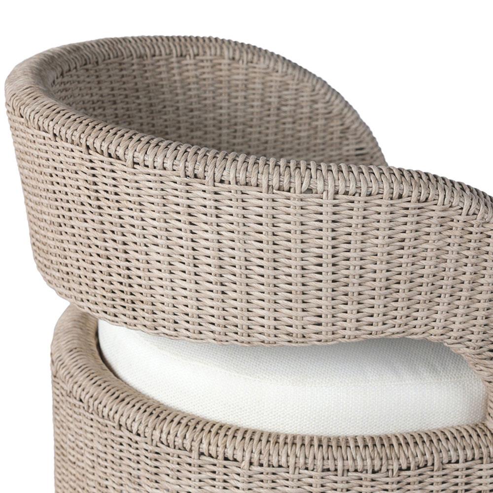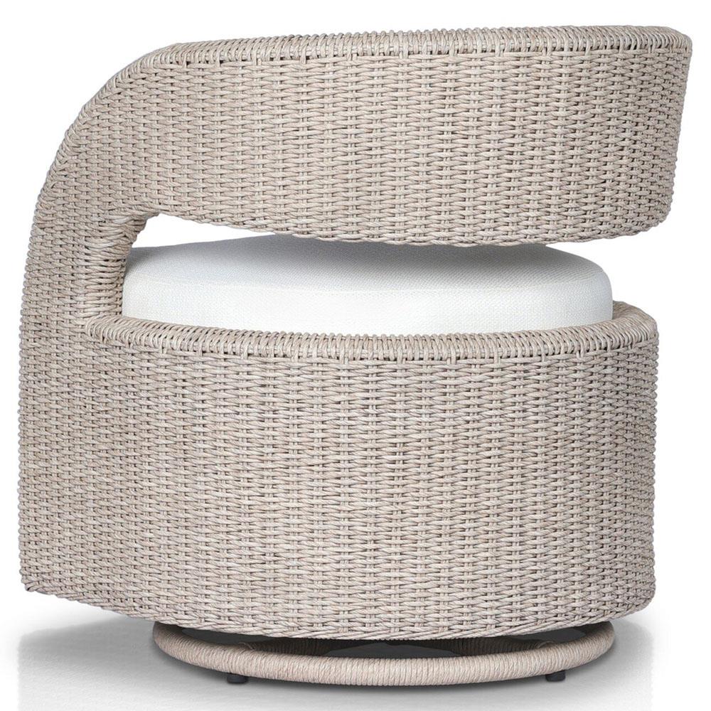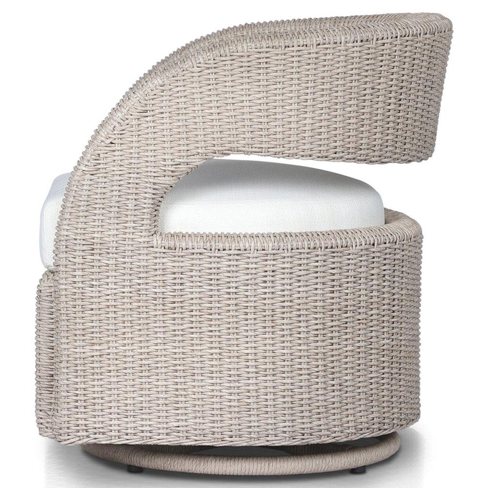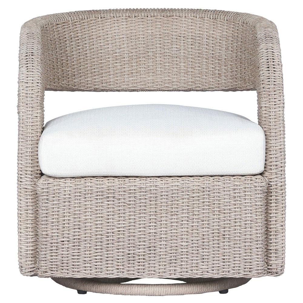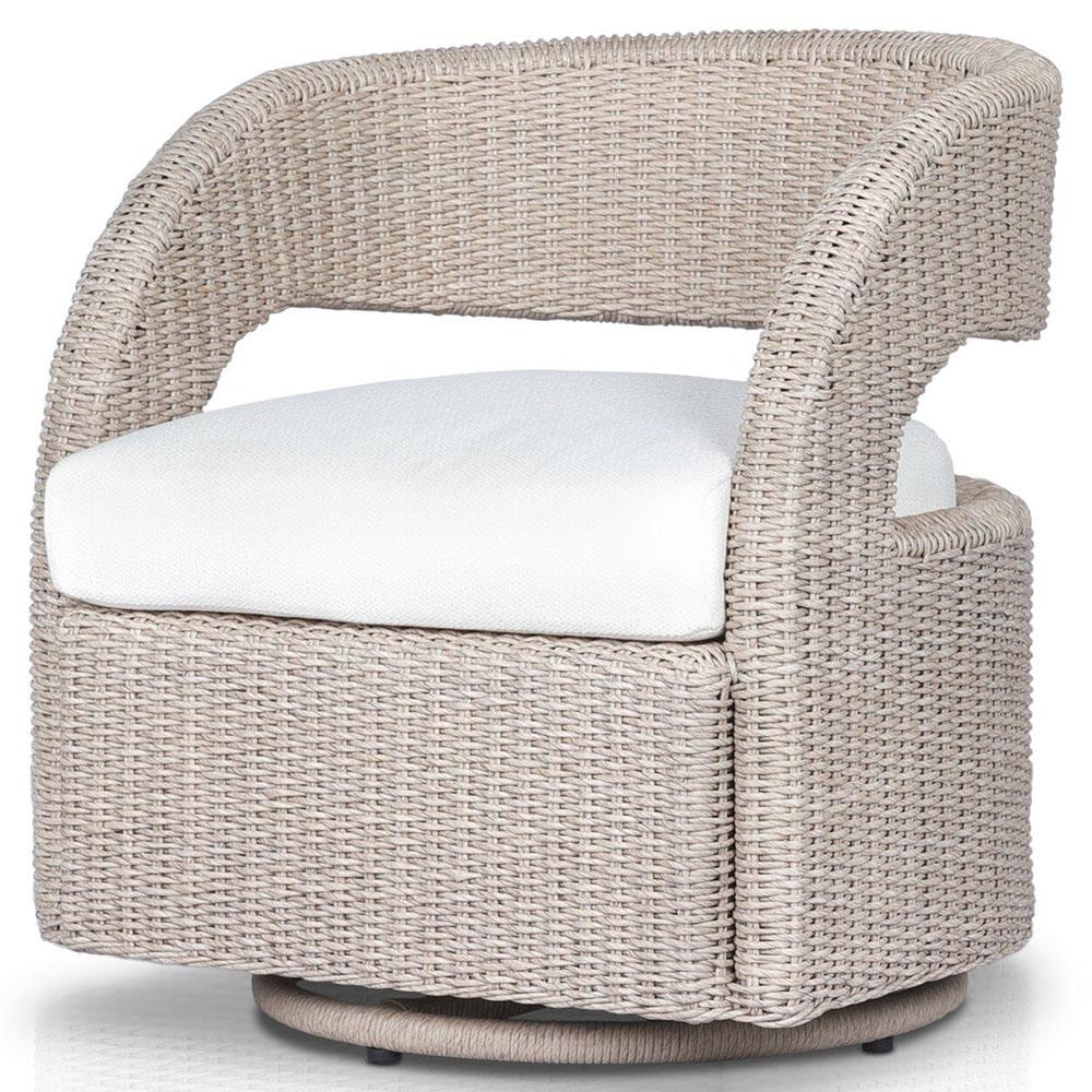 Alexander Coastal Off White Upholstered Beige Wicker Outdoor Swivel Arm Chair