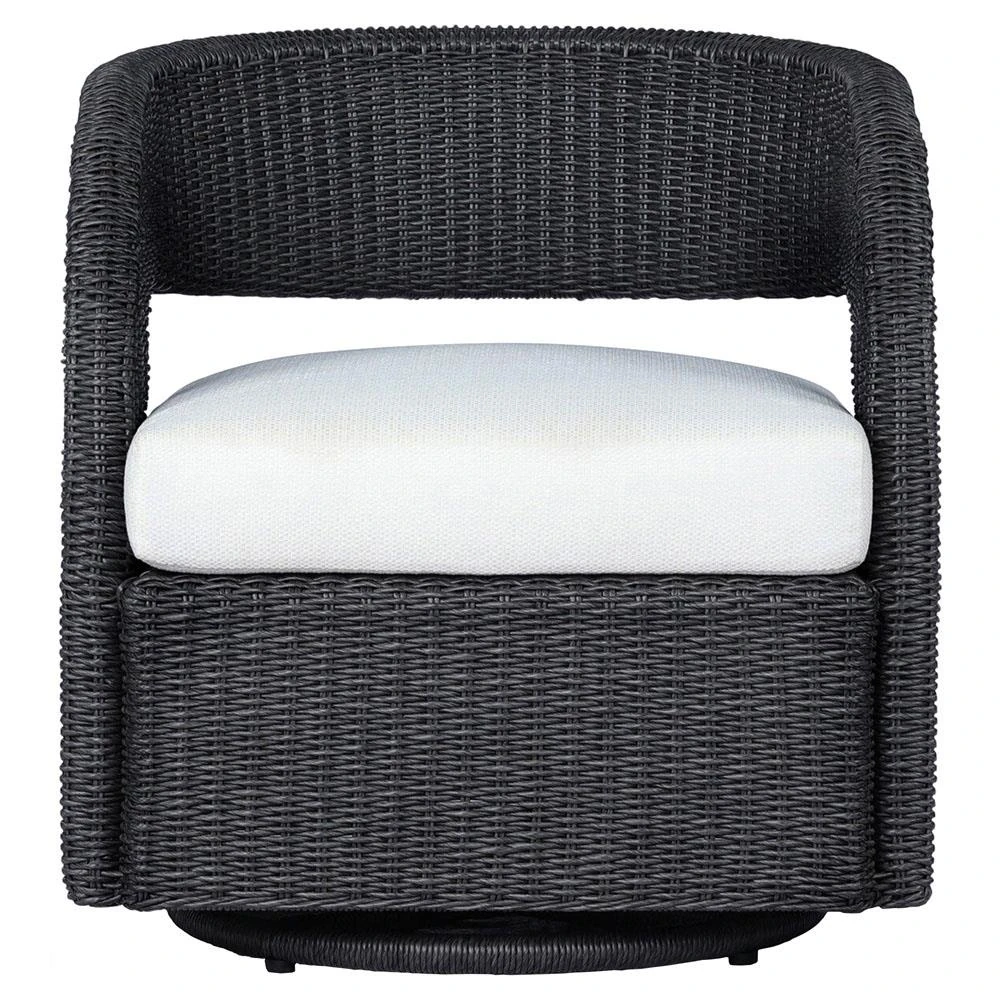 Alexander Coastal Off White Upholstered Black Wicker Outdoor Swivel Arm Chair