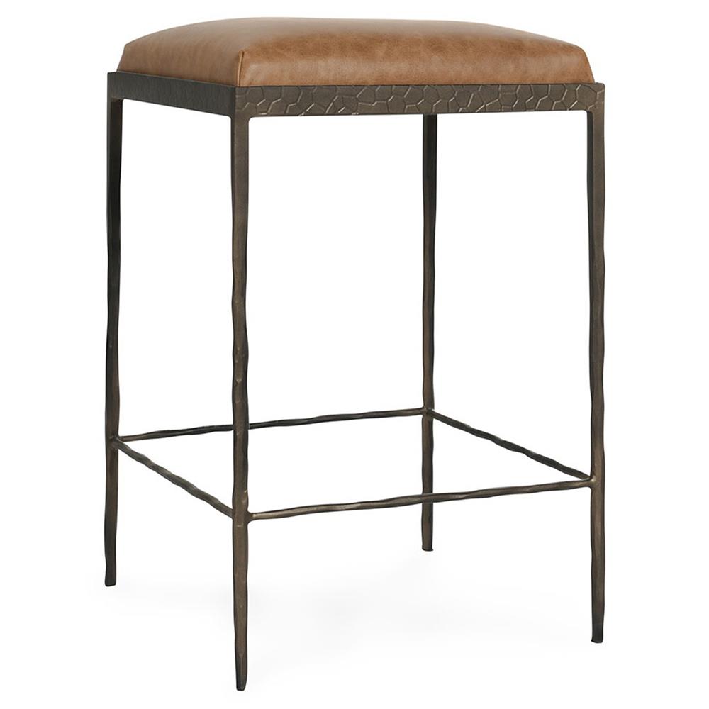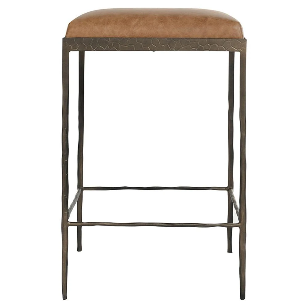 Geraldine Industrial Loft Tan Upholstered Leather Bronze Iron Counter Stool