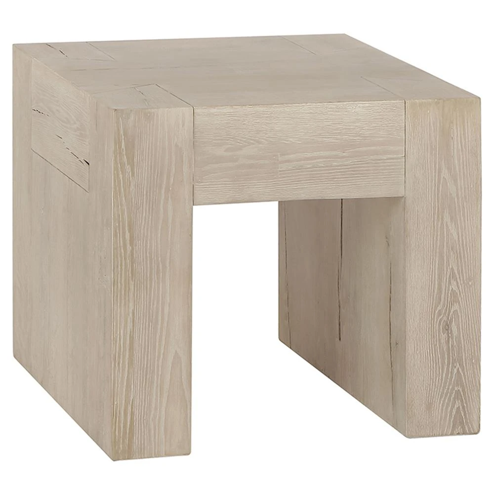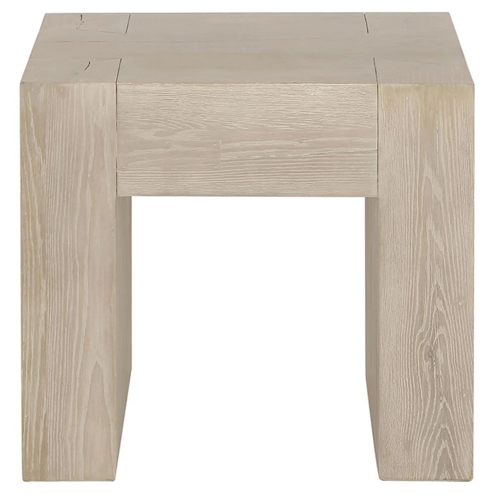 • Zyra Coastal Beach Bleached Brown Elm Wood Round Side Table|Kathy Kuo Home