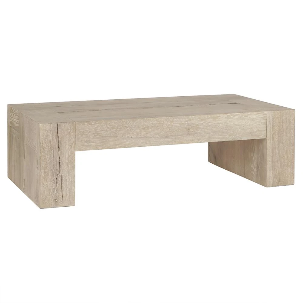 • Zyra Coastal Beach Brown Reclaimed Elm Wood Rectangular Coffee Table|Kathy Kuo Home