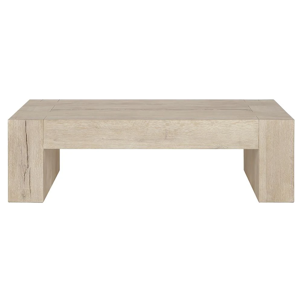 Brissy Rustic Lodge Cream Oak Wood Rectangular Coffee Table