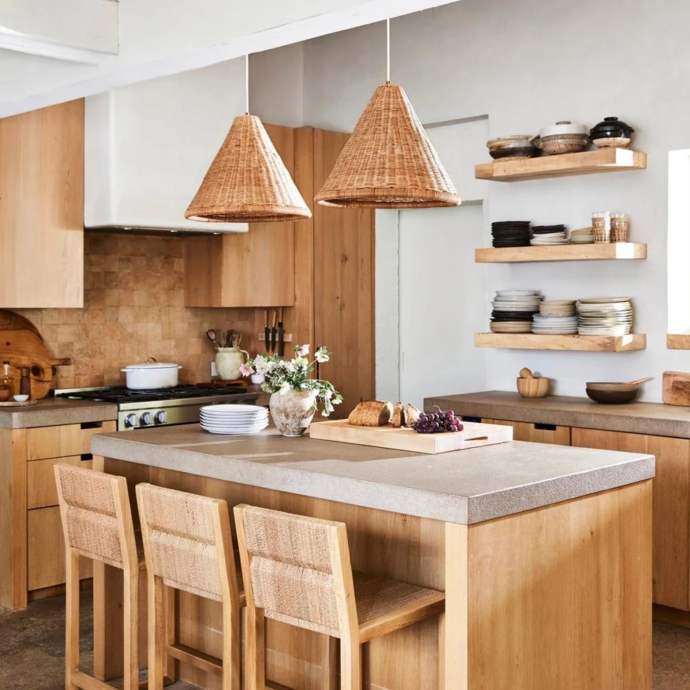 • Camille Coastal Beach Natural Rattan Pendant|Kathy Kuo Home
