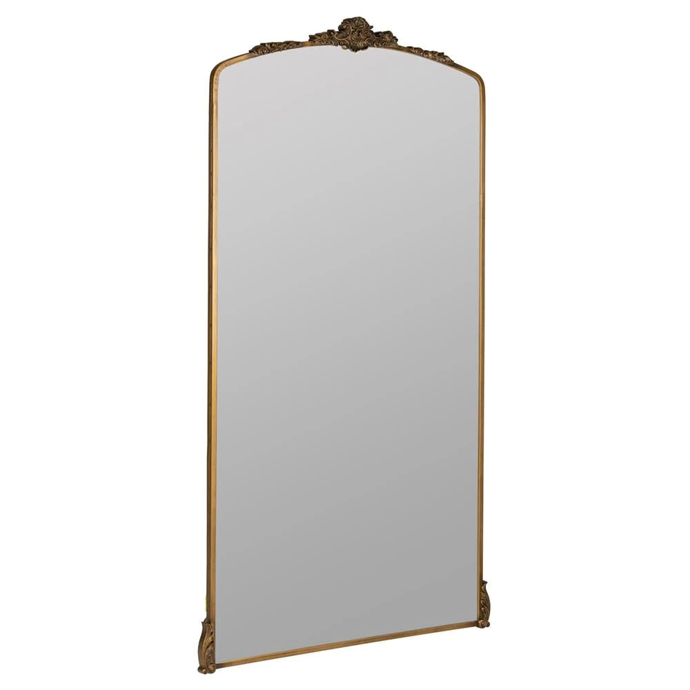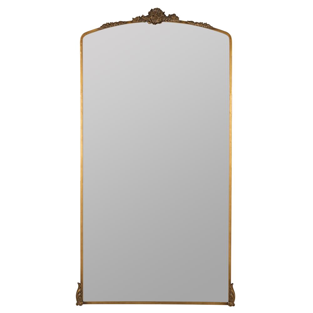 • Loren French Country Antique Gold Metal Arched Floor Mirror - 72"|Kathy Kuo Home