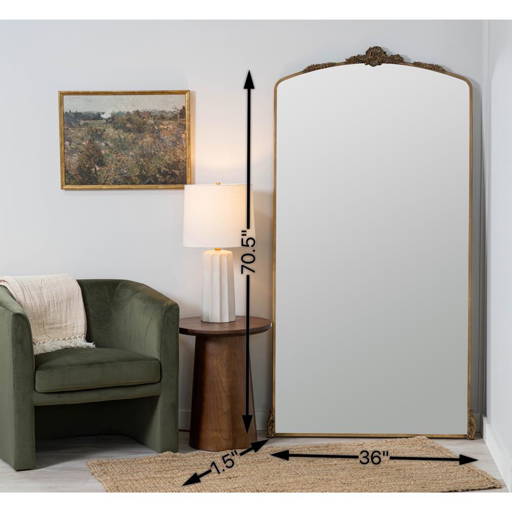 Loren French Country Antique Gold Metal Arched Floor Mirror - 72"