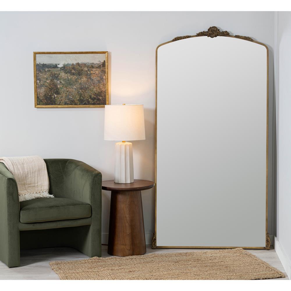 • Loren French Country Antique Gold Metal Arched Floor Mirror - 81"|Kathy Kuo Home