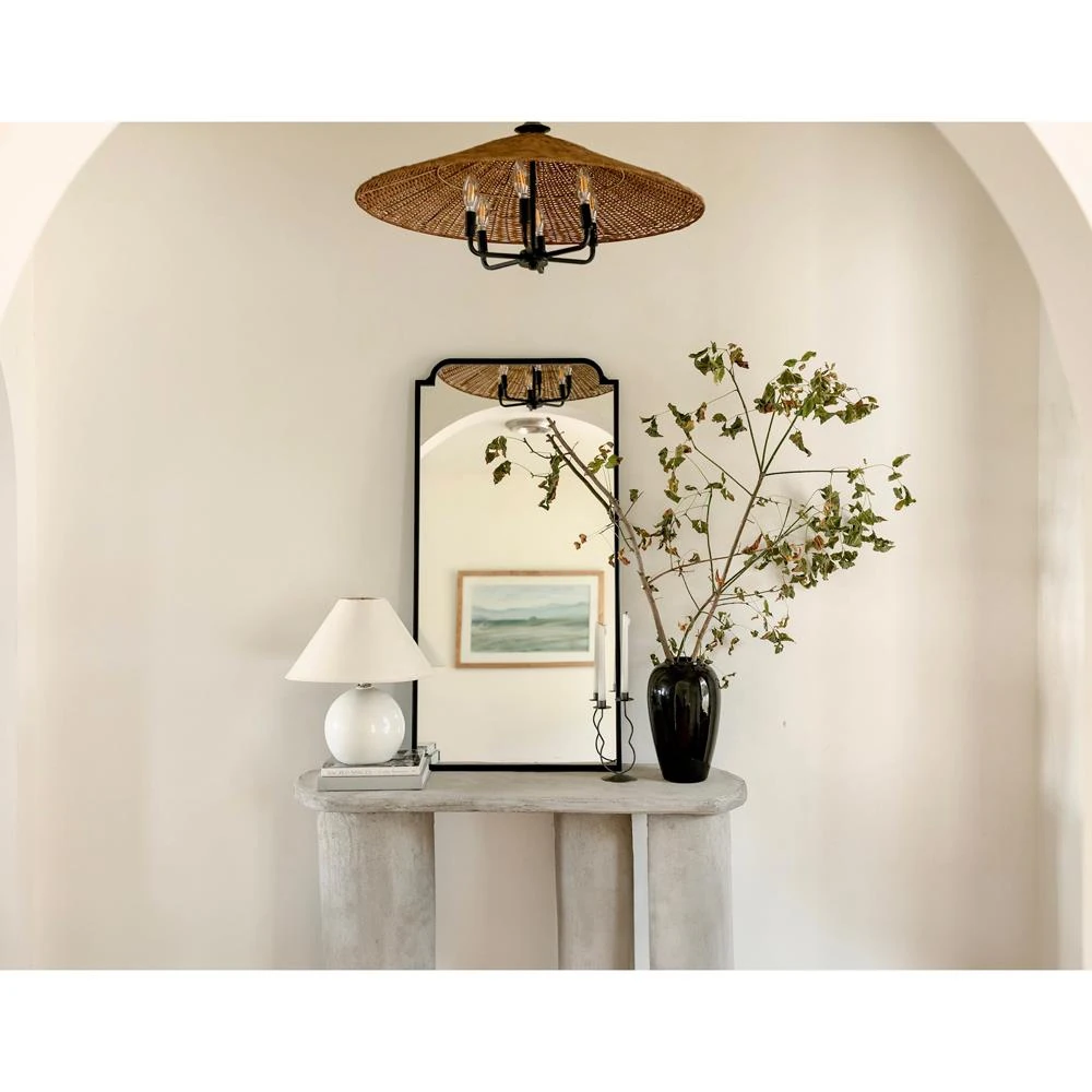 • Marlowe Coastal Beach Natural Corn Husk Arched Wall Mirror|Kathy Kuo Home
