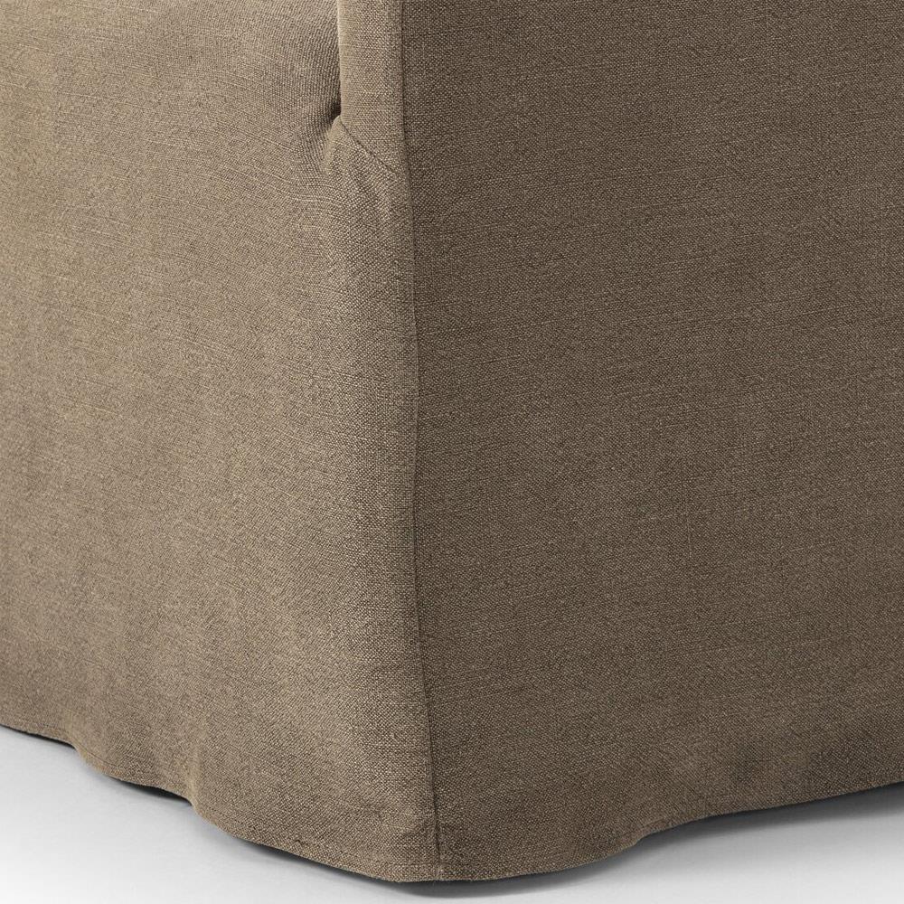 • Upholstered in broadway coffee fabric: Fabric content: 100% flax/linen; Foam Pad: 87% polyurethane