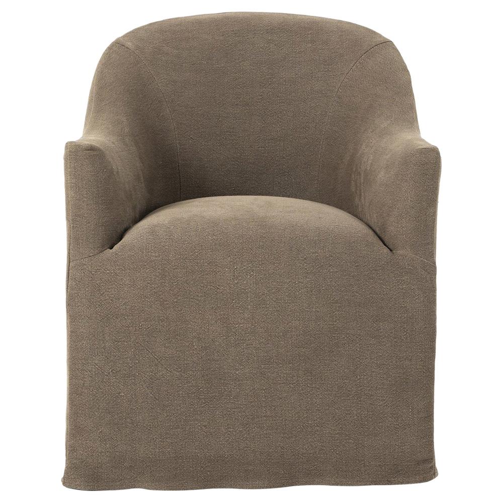 Desiree Modern French Coffee Brown Slipcover Dining Arm Chair