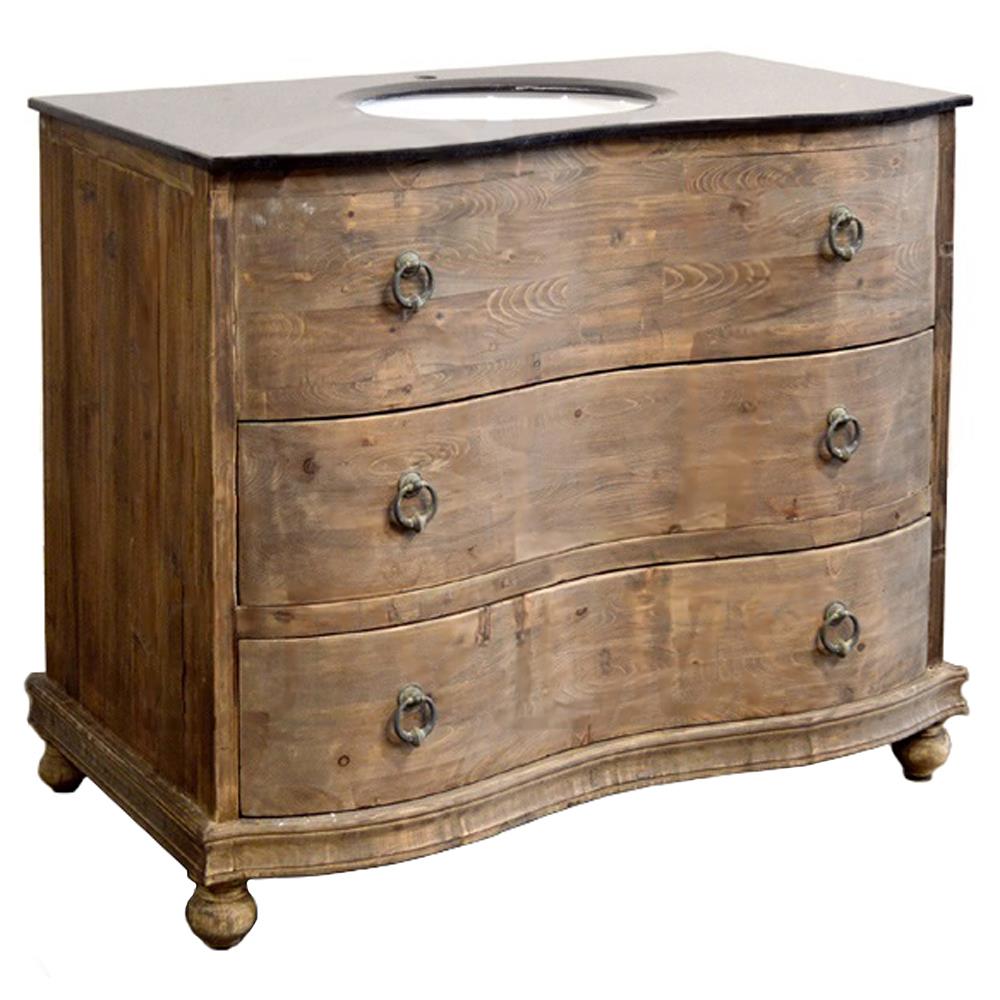 • Keira French Country Blue Stone Brown Reclaimed Pine Vanity Sink - 46"|Kathy Kuo Home