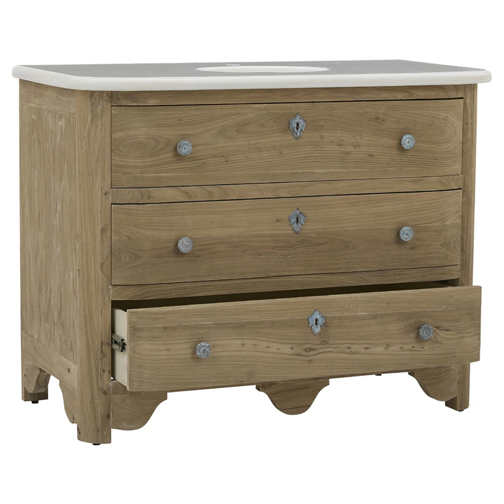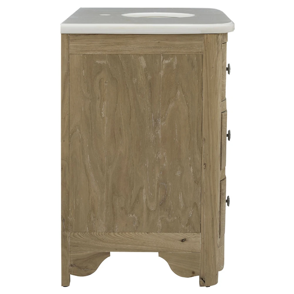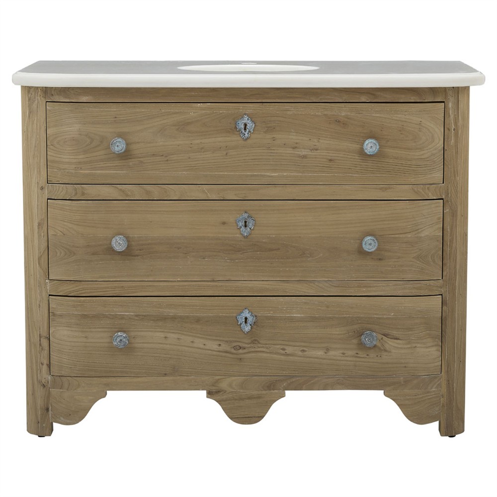 • Keira French Country White Marble Brown Reclaimed Pine Vanity Sink - 46"|Kathy Kuo Home