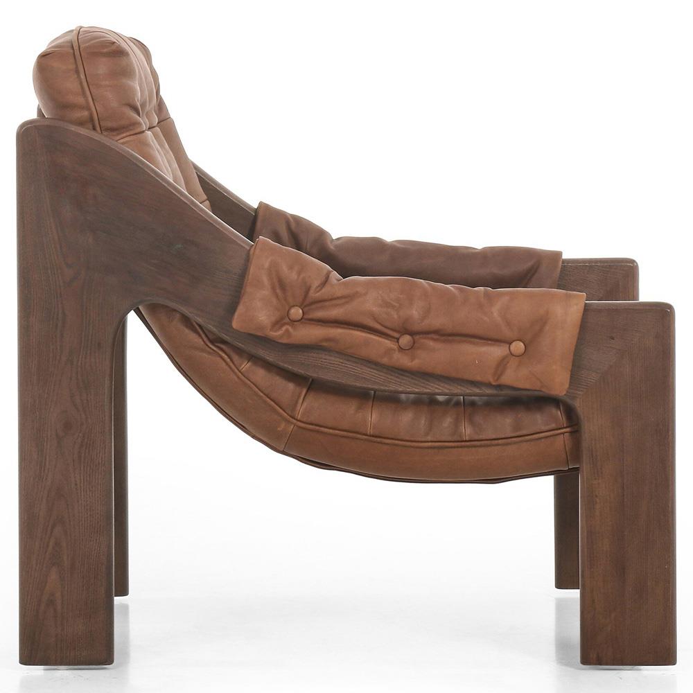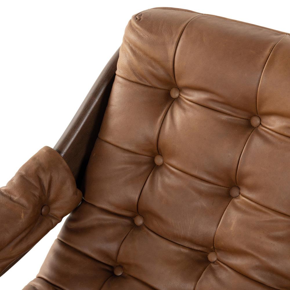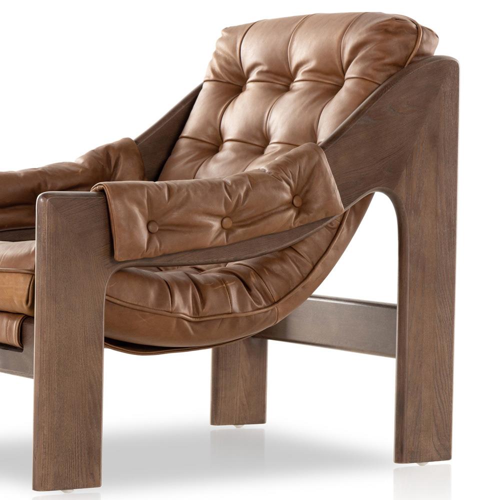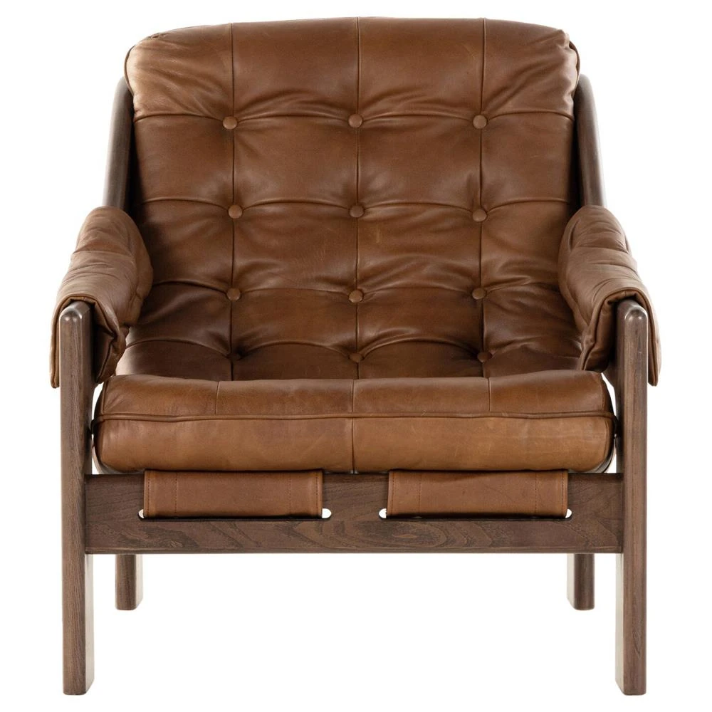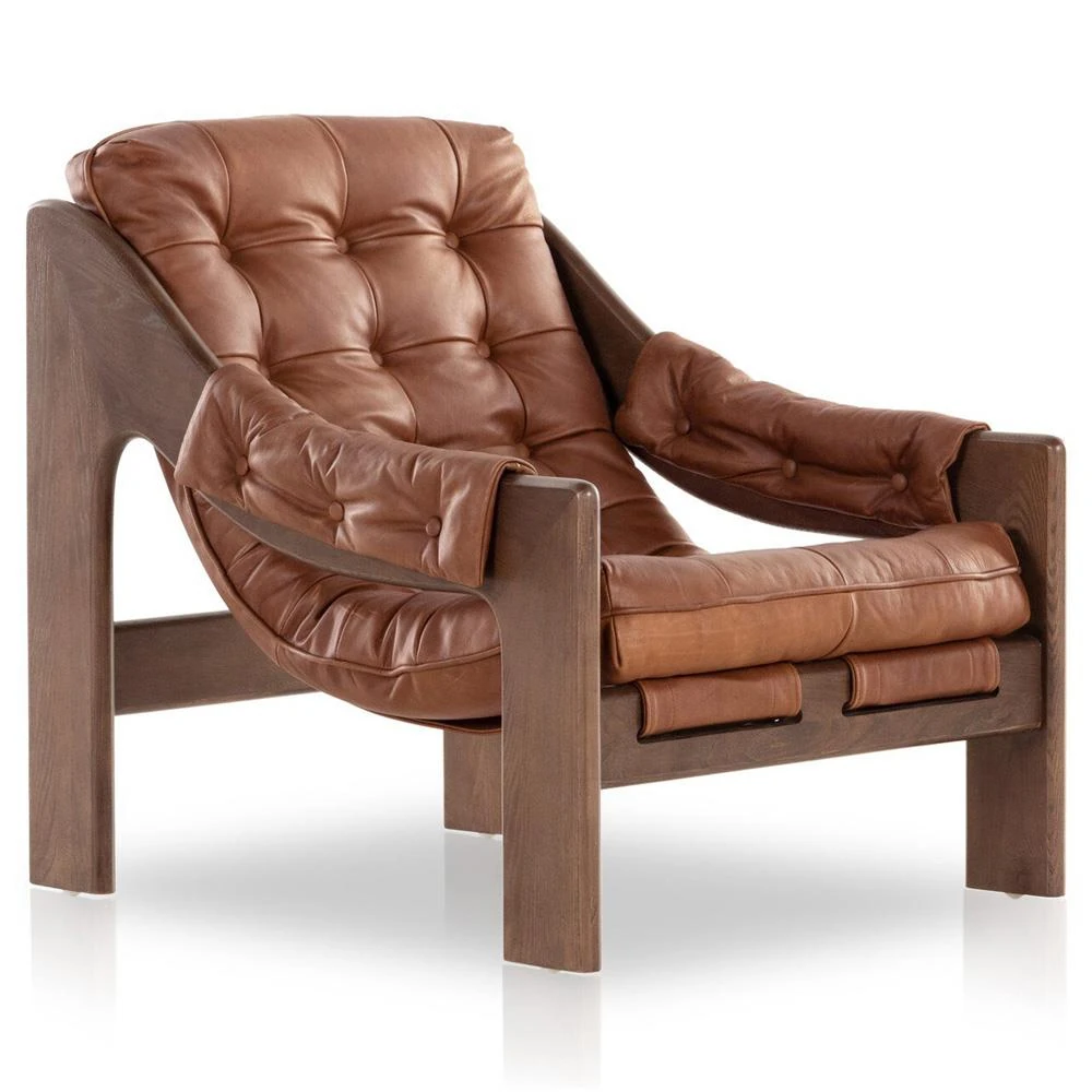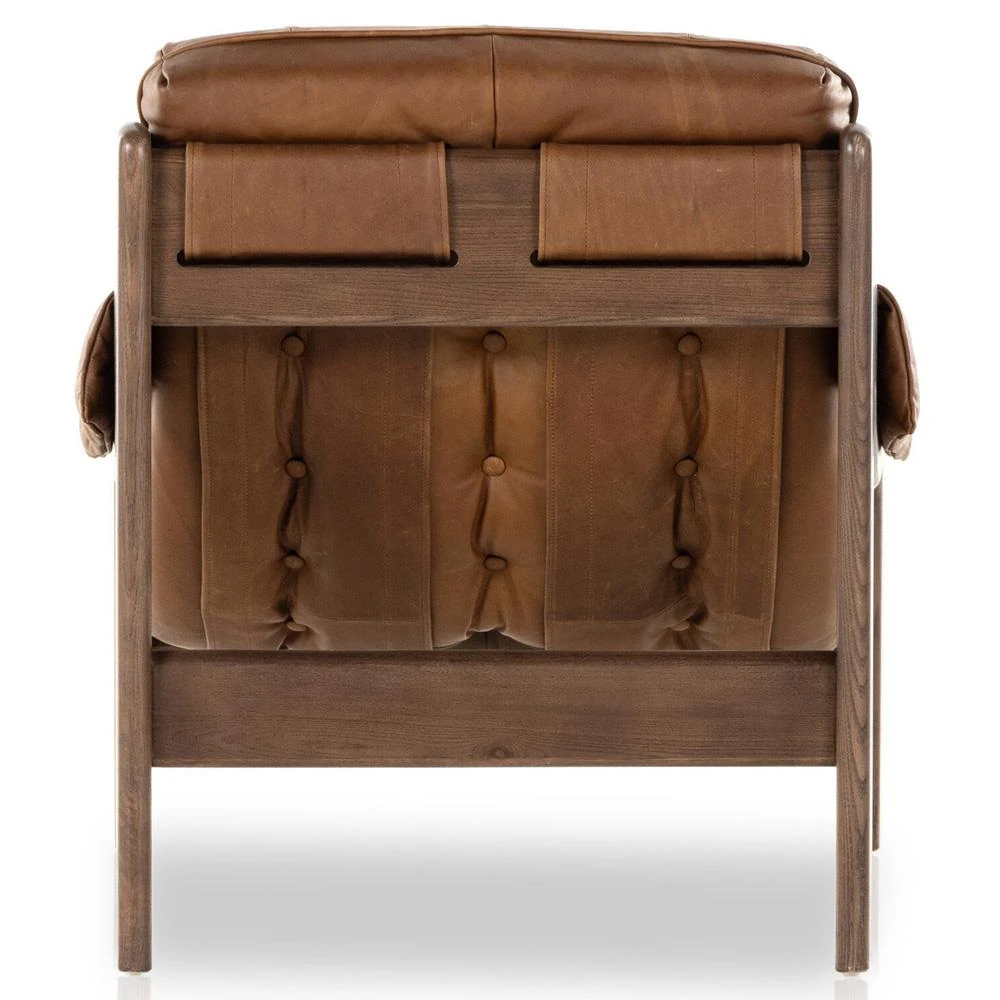 Hadley Rustic Brown Leather Wood Tufted Occasional Arm Chair