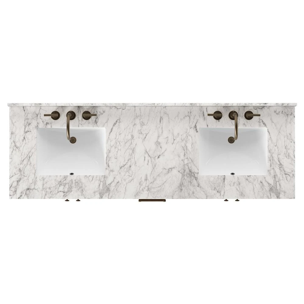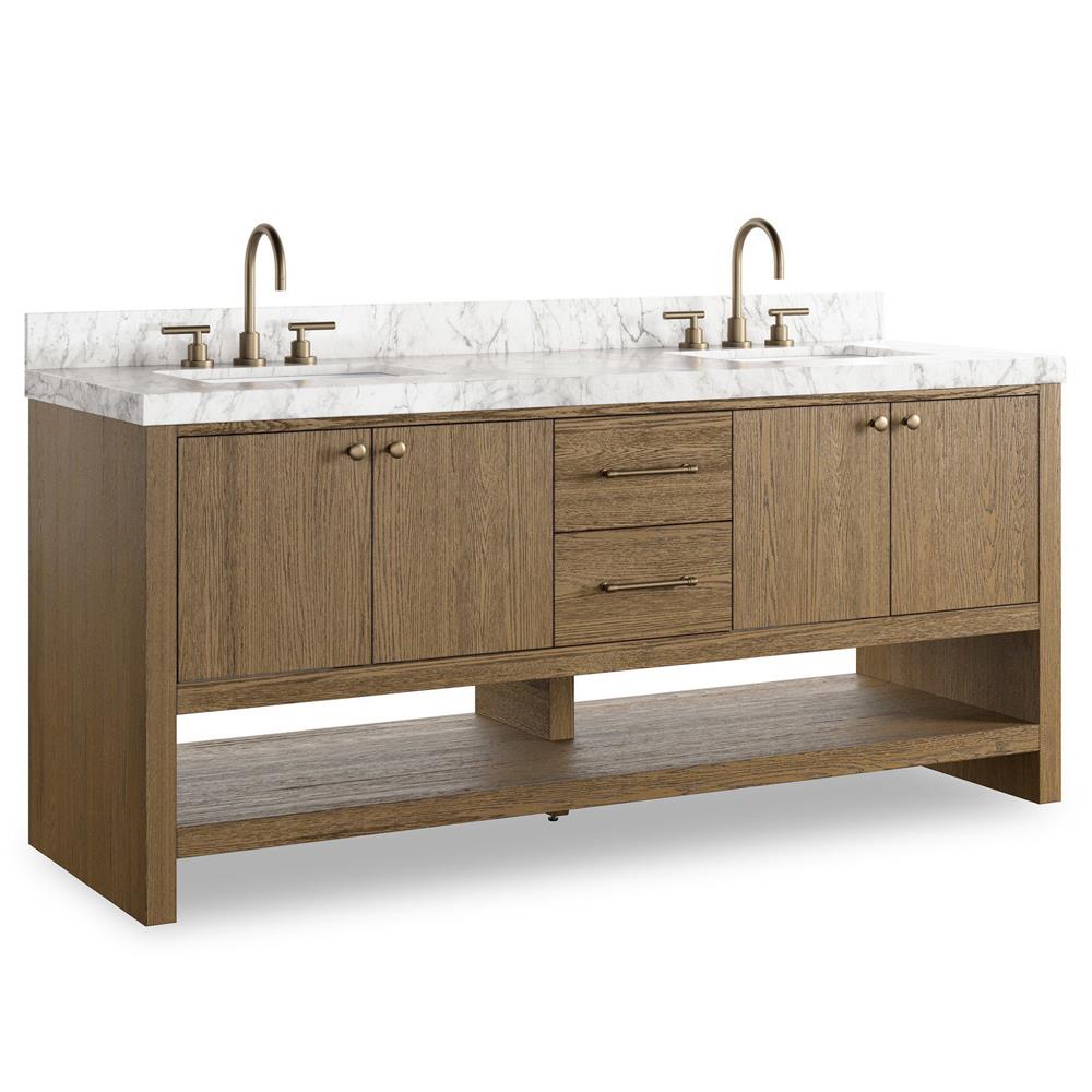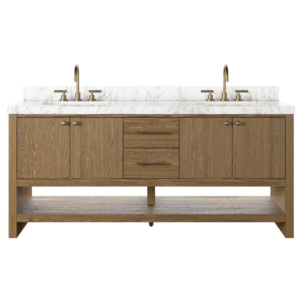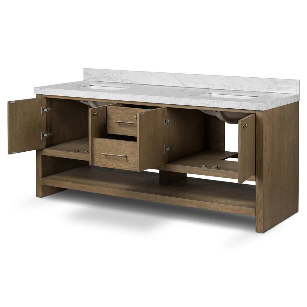 Allissa Modern Classic Carrara Marble Natural Oak Double Vanity Sink - 72"