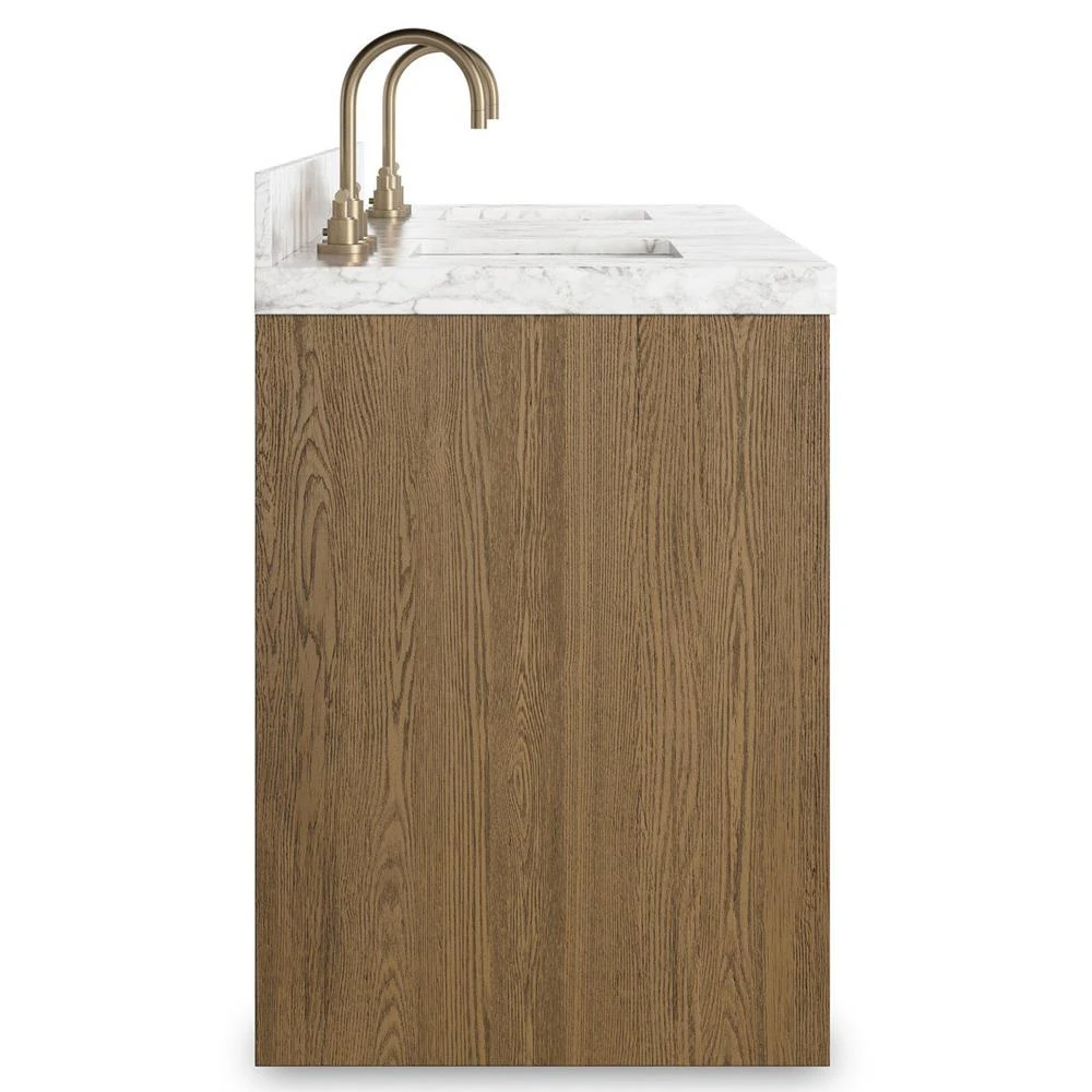 • Cynthia Modern Classic Carrara Marble Bleached Oak Double Vanity Sink - 60"|Kathy Kuo Home