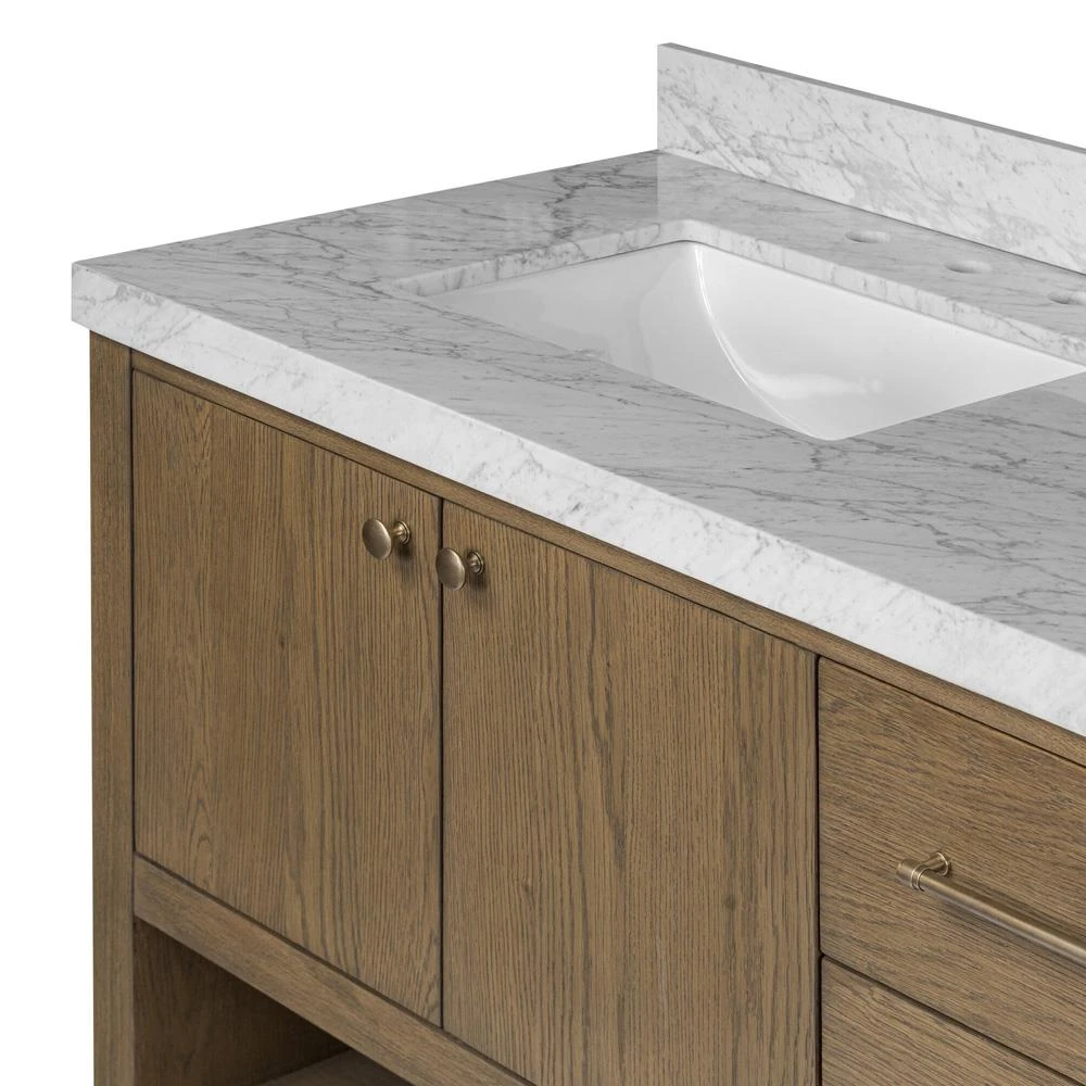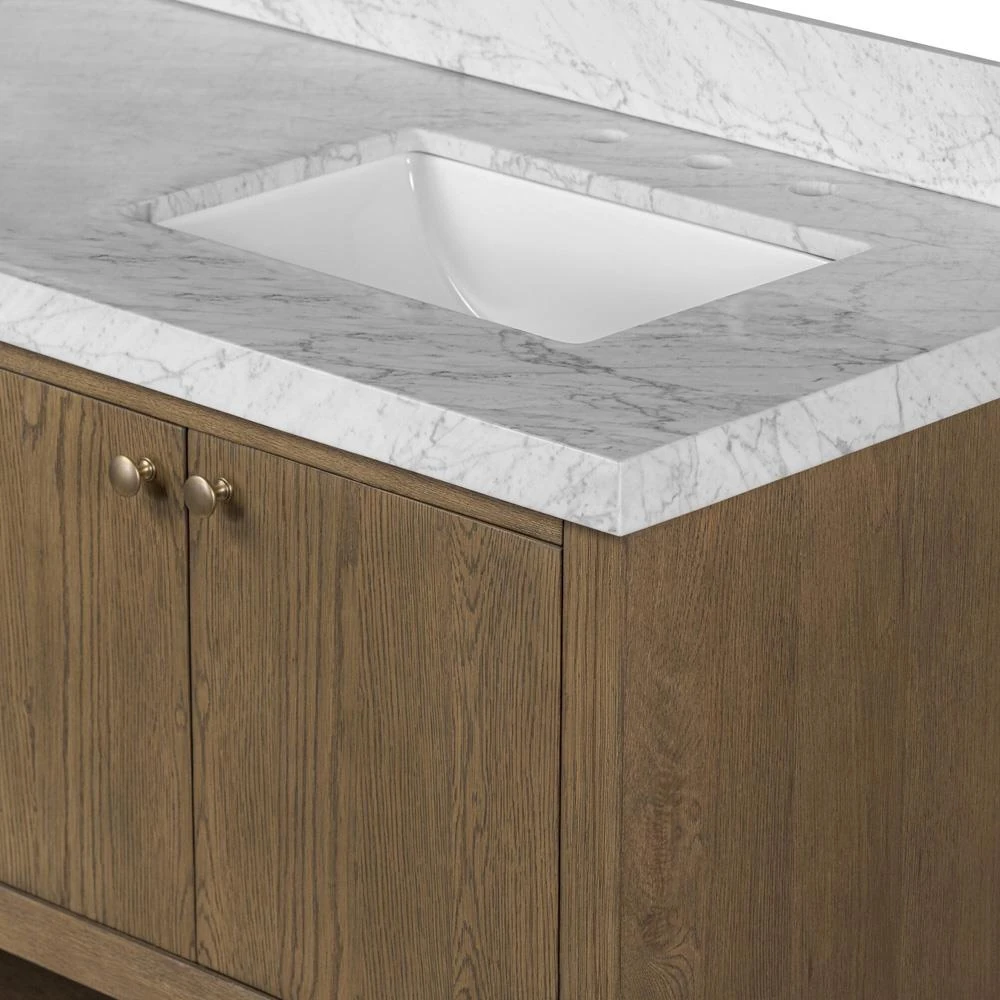 Cynthia Modern Classic Carrara Marble Bleached Oak Wide Vanity Sink - 48"