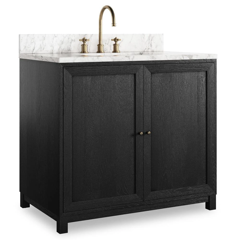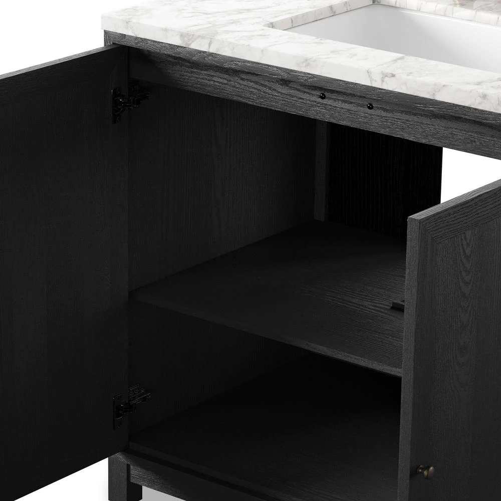Cynthia Modern Classic Carrara Marble Black Oak Vanity Sink - 36"