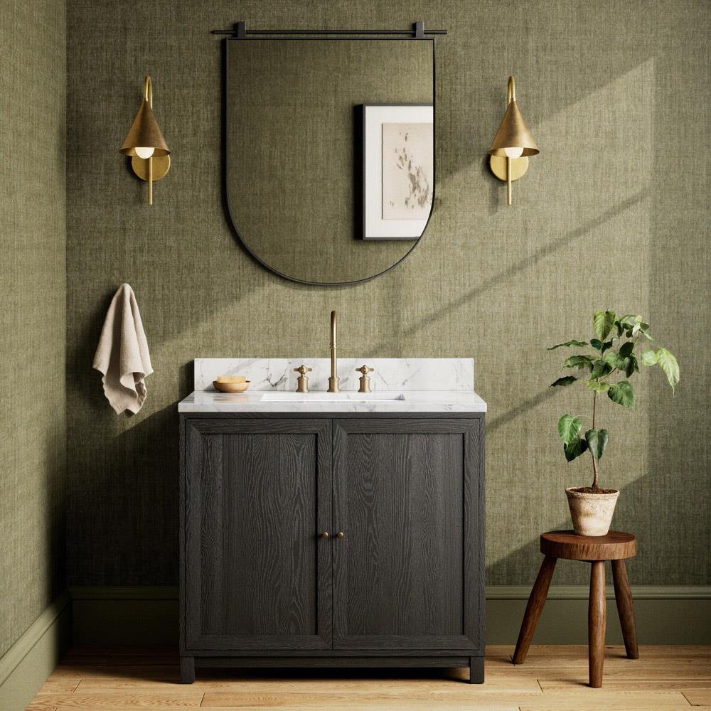 • Eileen Updated Traditional White Marble Grey Wood Vanity Sink - 42"|Kathy Kuo Home