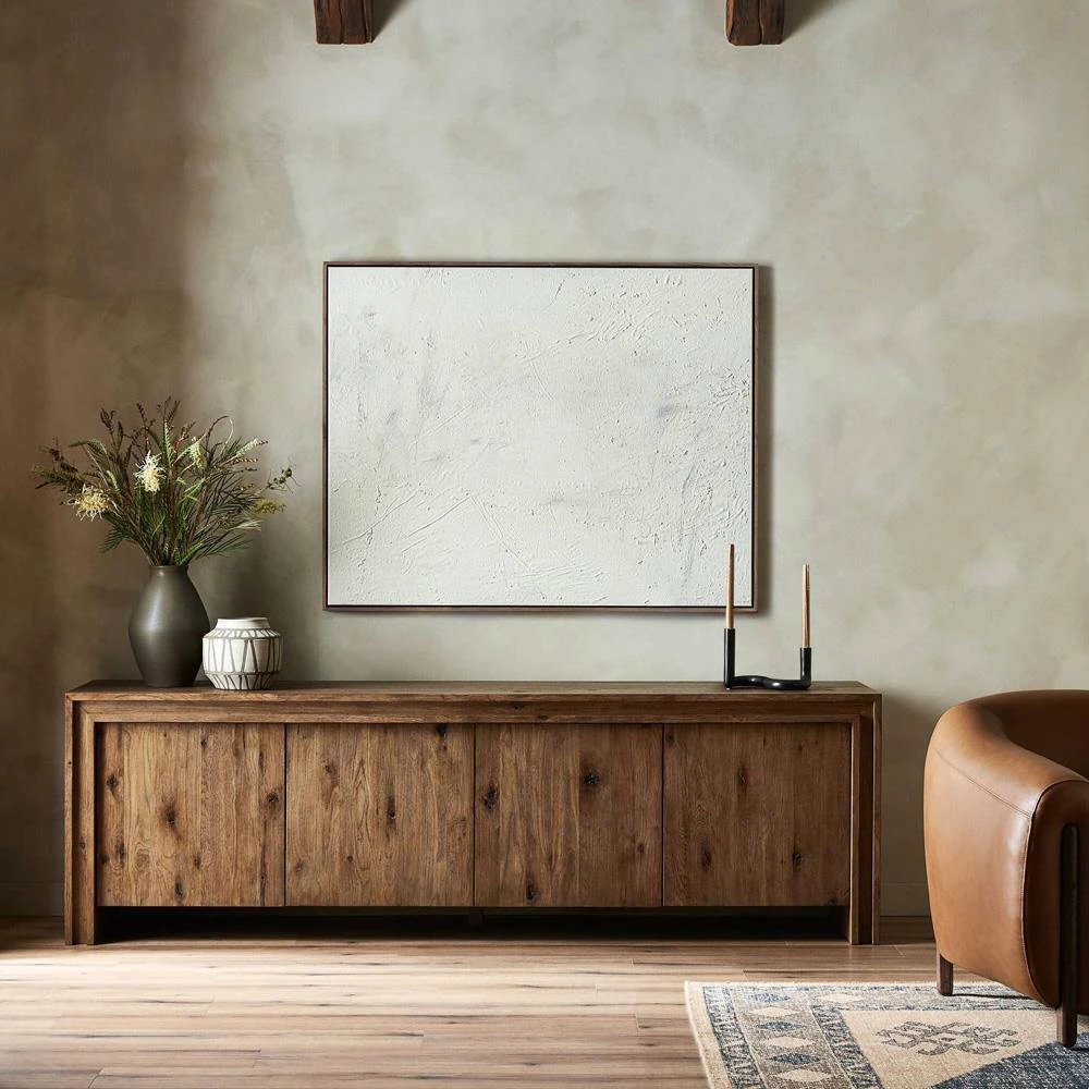 • Zack Rustic Lodge Brown Oak Wood Media Console - 78"|Kathy Kuo Home