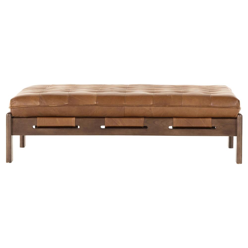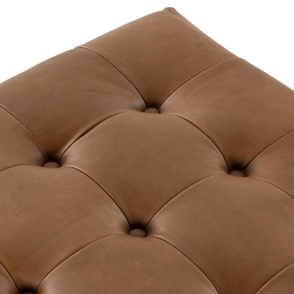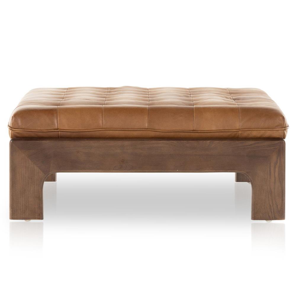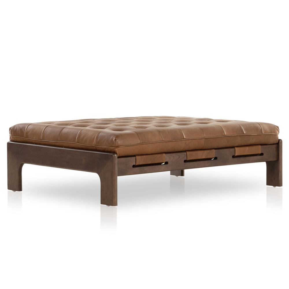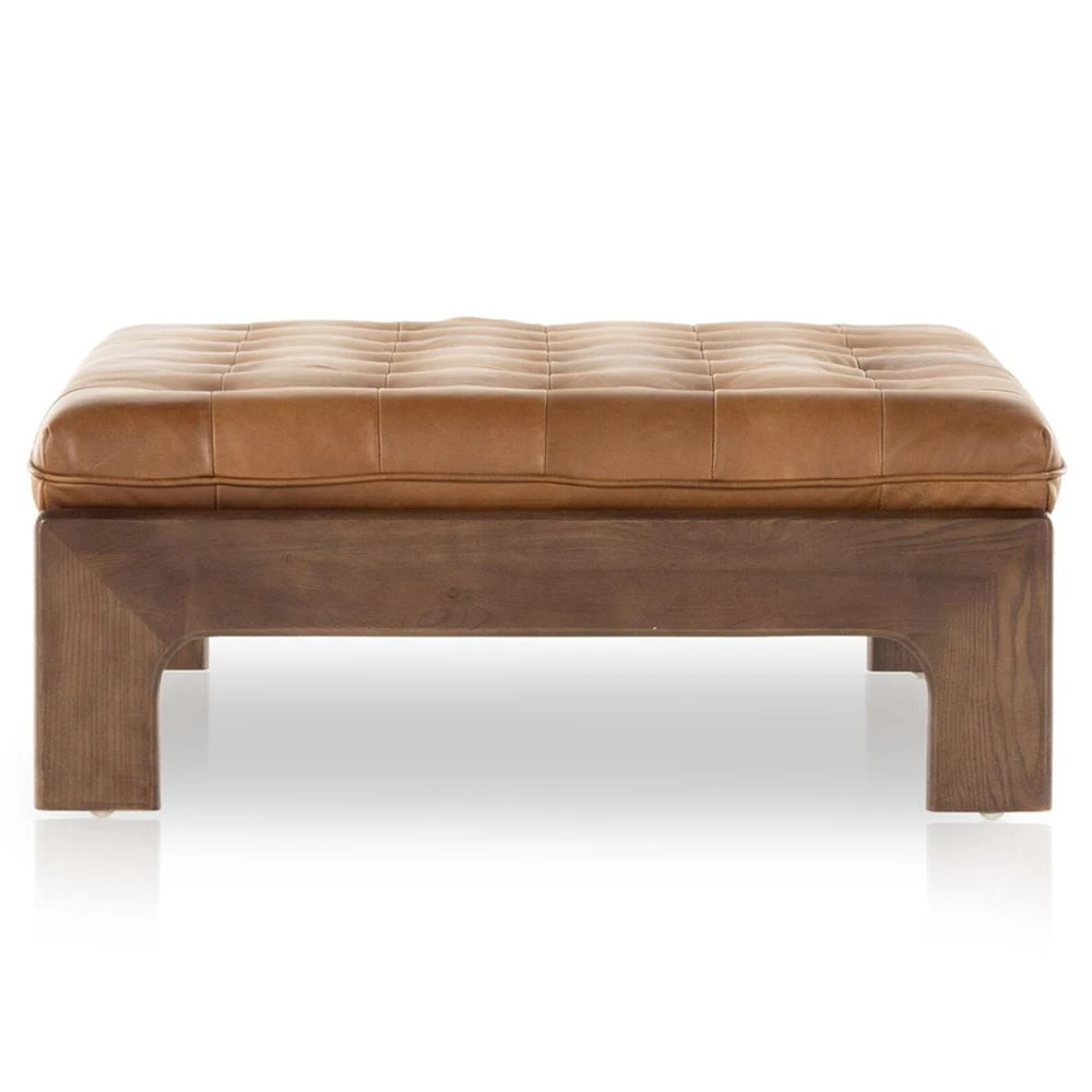 Hadley Rustic Brown Leather Wood Tufted Ottoman