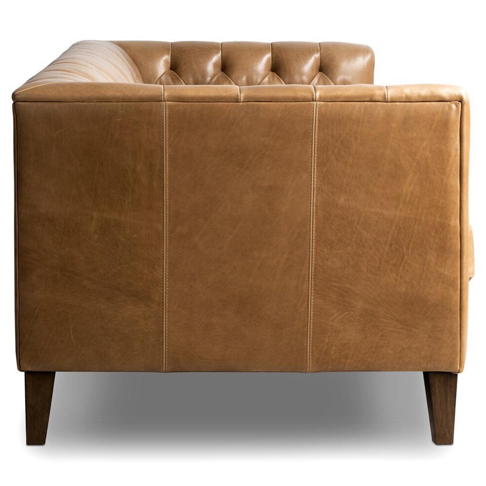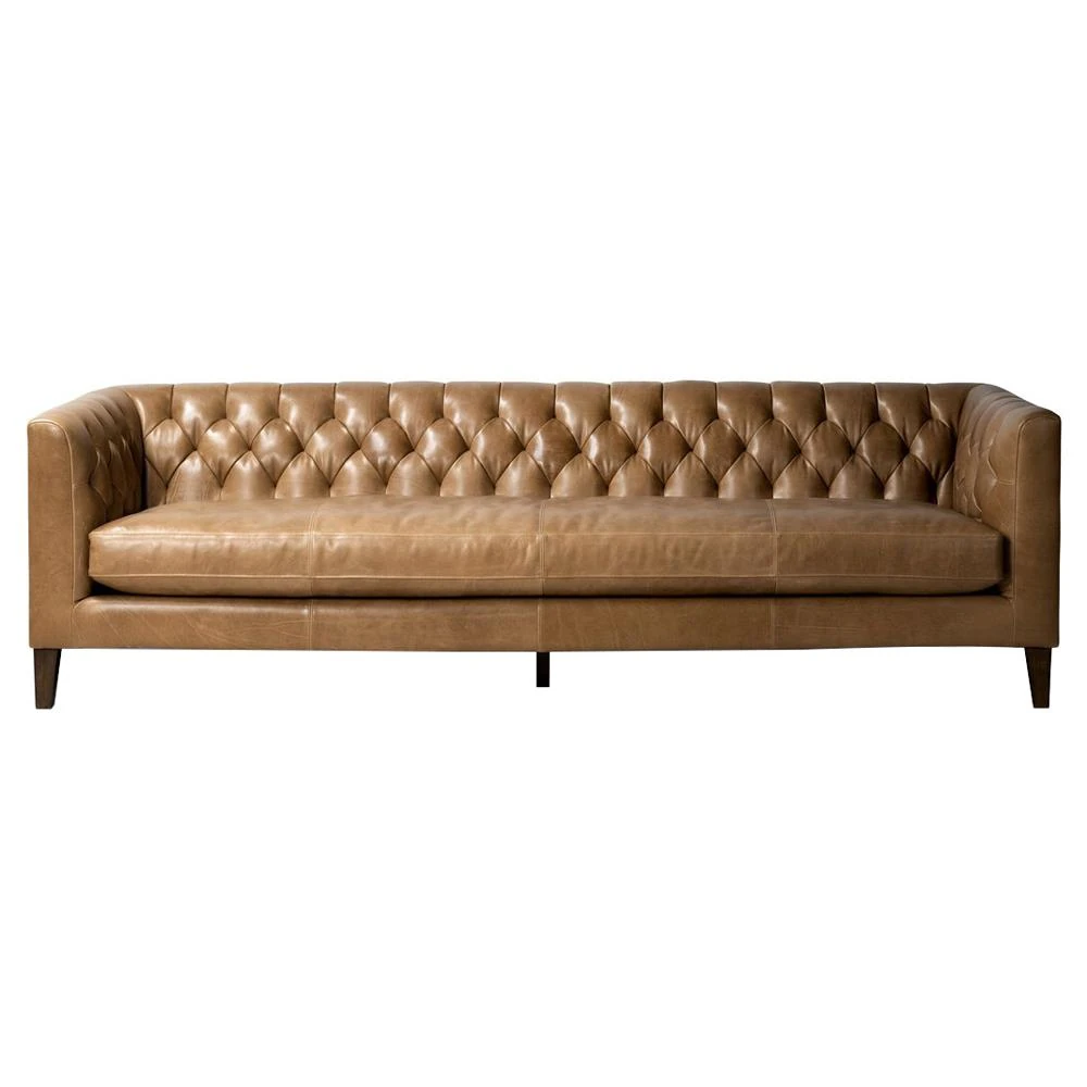 Trina Rustic Lodge Brown Leather Tufted Chesterfield Sofa - 96"W