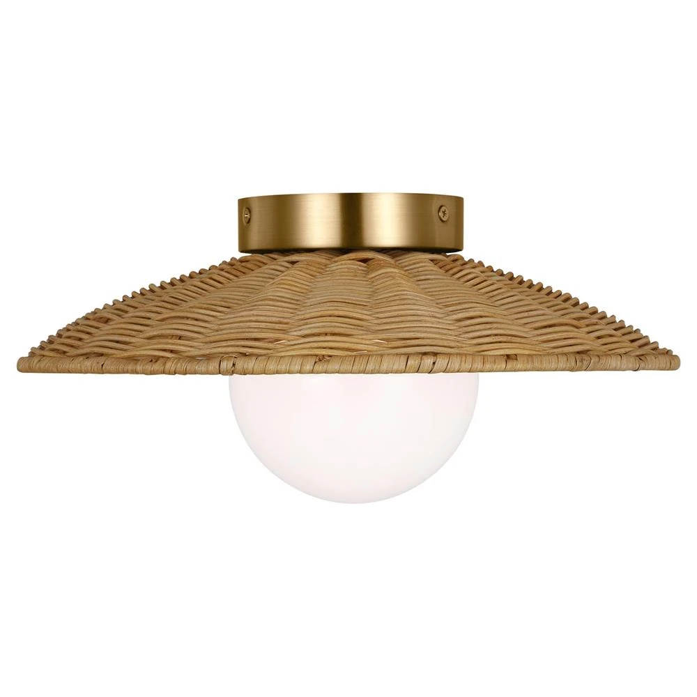Visual Comfort Studio Mari Coastal Burnished Brass Rattan Shade Flush Mount