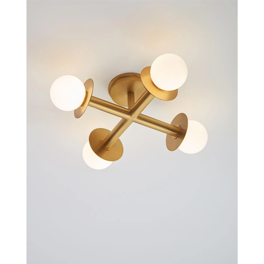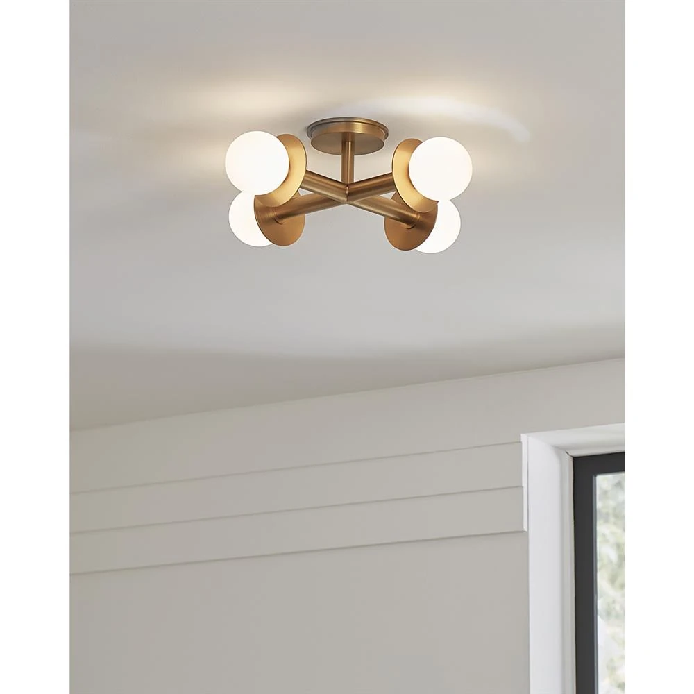 Visual Comfort Studio Nodes Mid Century Burnished Brass Semi Flush Mount